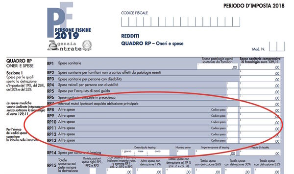 • Per la detrazione fiscale, riportare il codice "71" nei righi da RP8 a RP13.
