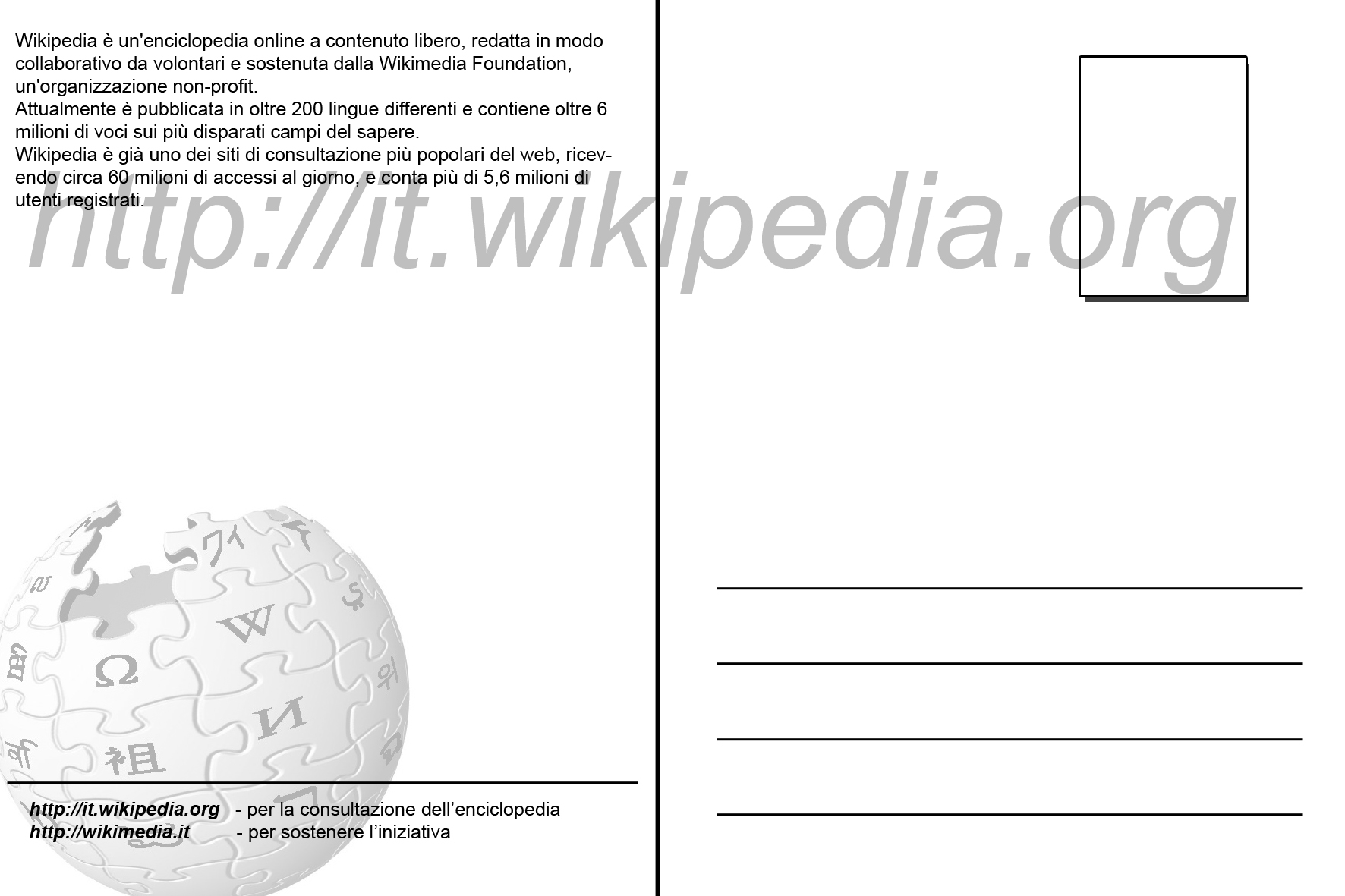 | attuale | 12:36, 19 mar 2007 | 1 772 × 1 181 (348 KB) | Jollyroger (Discussione | contributi) | Retro per le cartoline di wikipedia by Utente:Jollyroger {{Copyright by wikimedia}} |
