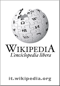 Poster promozionale di Wikipedia cm.100x70 per eventi Wikimedia Italia v.1.2. Descrizione: logo di Wikipedia + slogan in italiano + URL it.wikipedia.org. Impaginazione di Marcok. Versione per stampante (disponibile a richiesta versione di qualità migliore per macchina da stampa). Il logo di Wikipedia è copyright della Wikimedia Foundation.