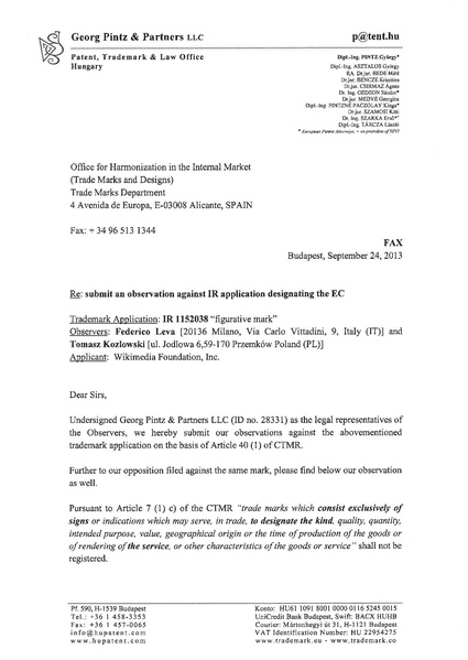Parte di un atto ufficiale OHIM, LdA art. 5.