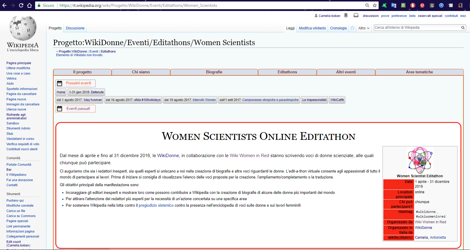 Editathon STEM di WIkiDonne - Women Scientists. Novembre 2016.