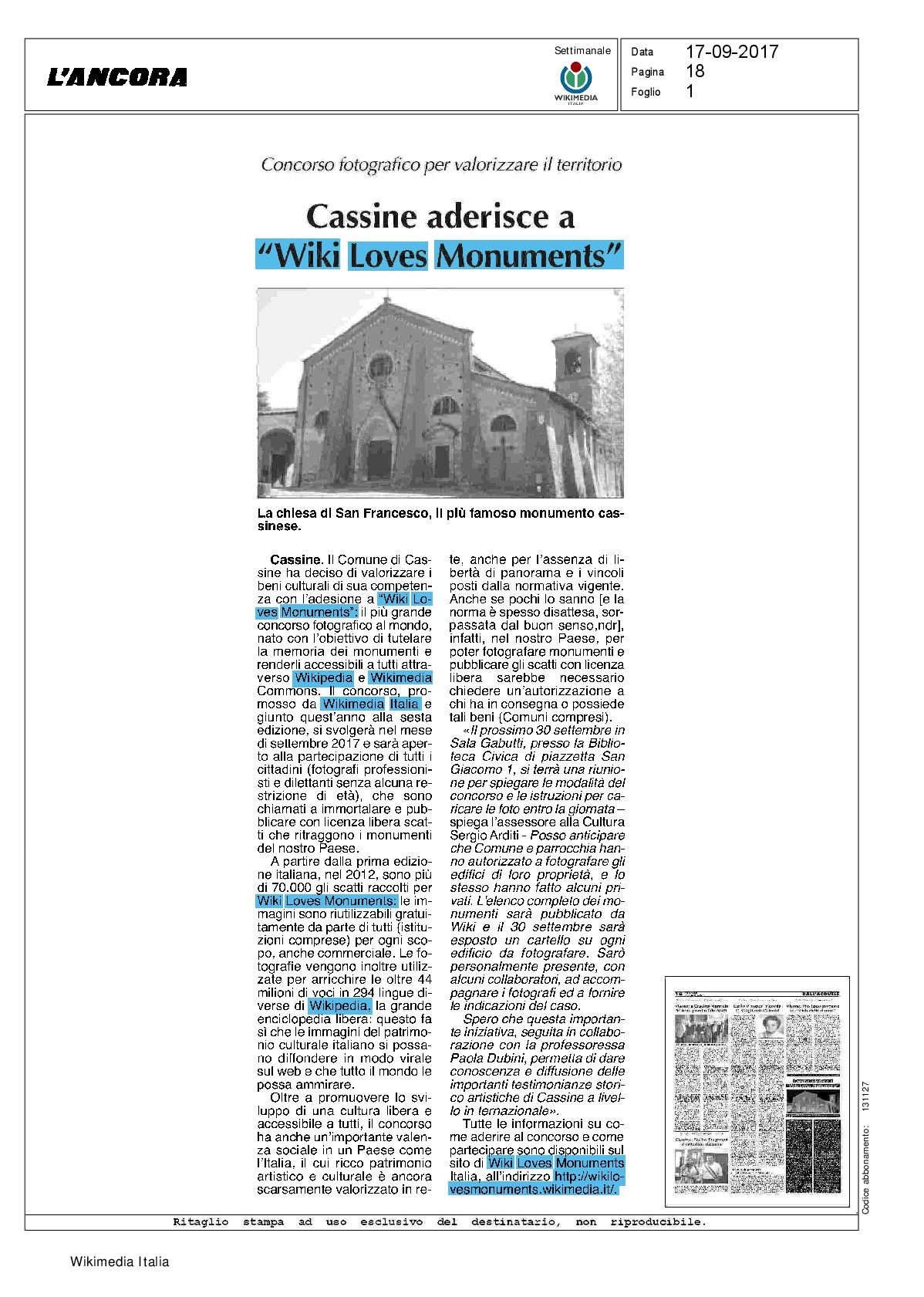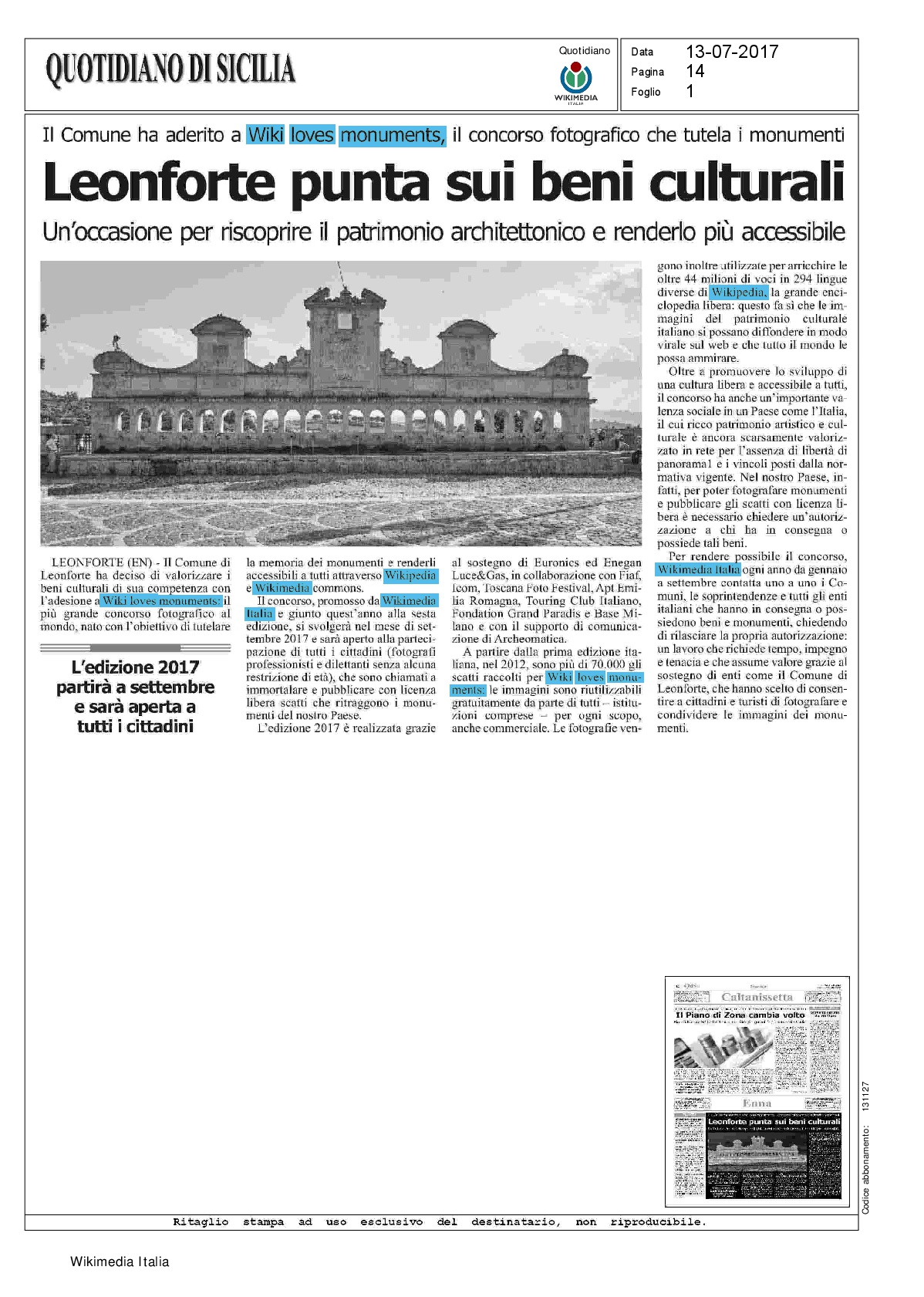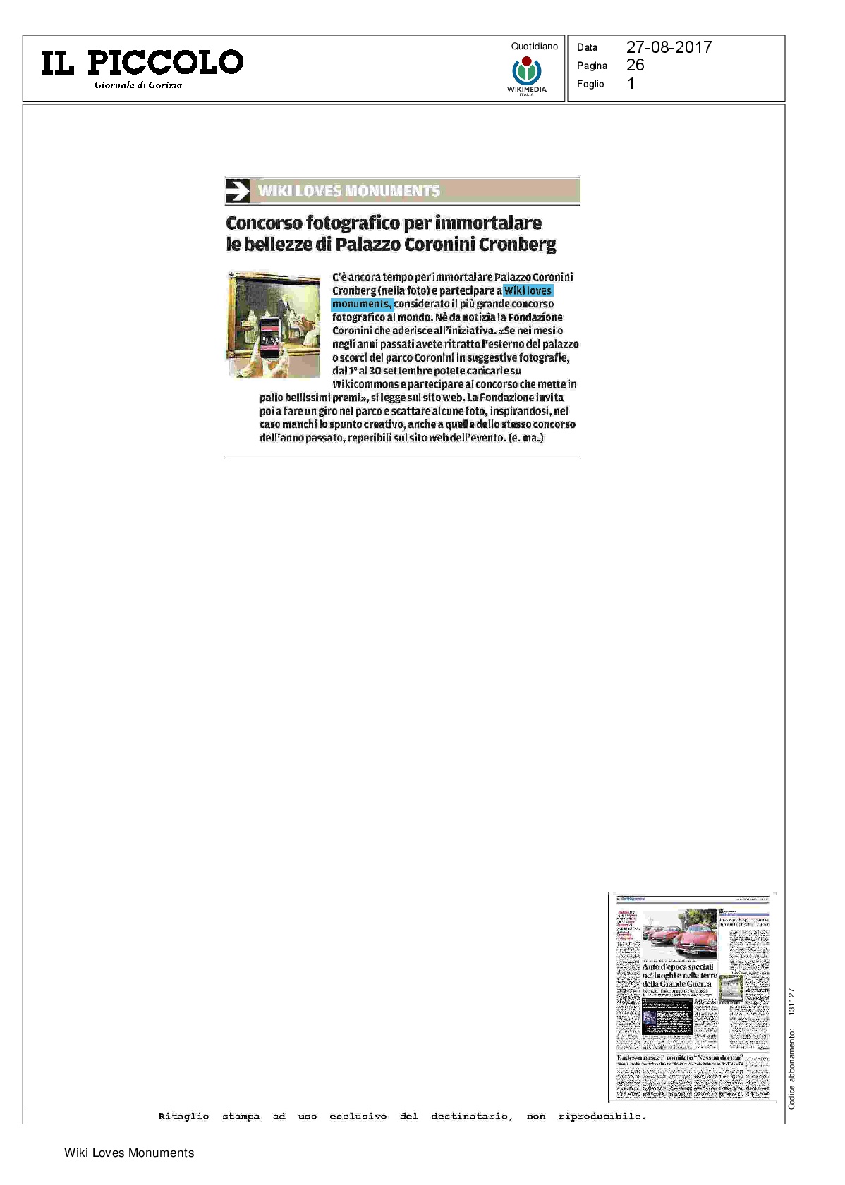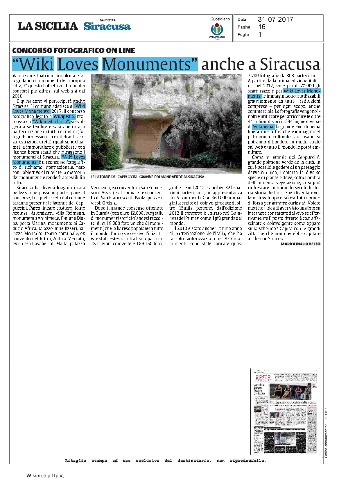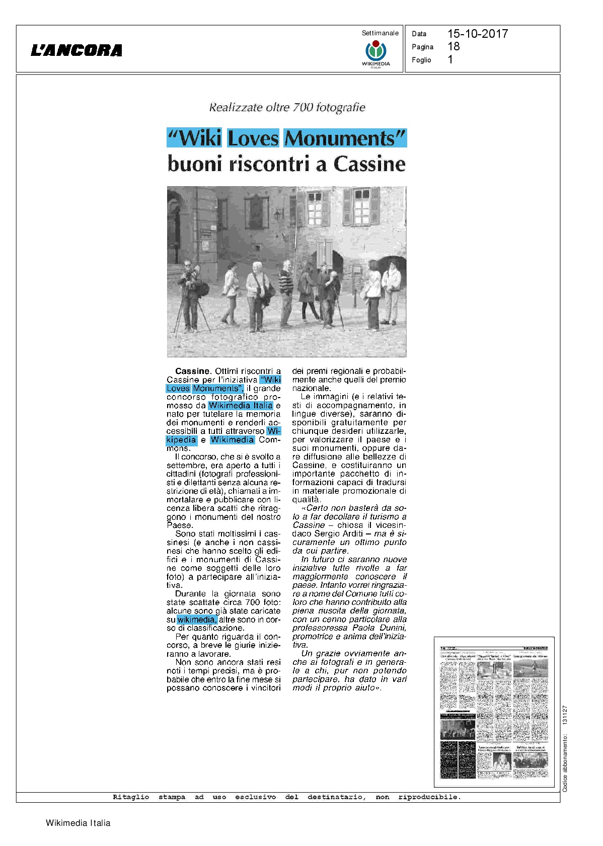 - Wiki Loves Monuments Italia 2017, annunciati i vincitori, Fotozona.it