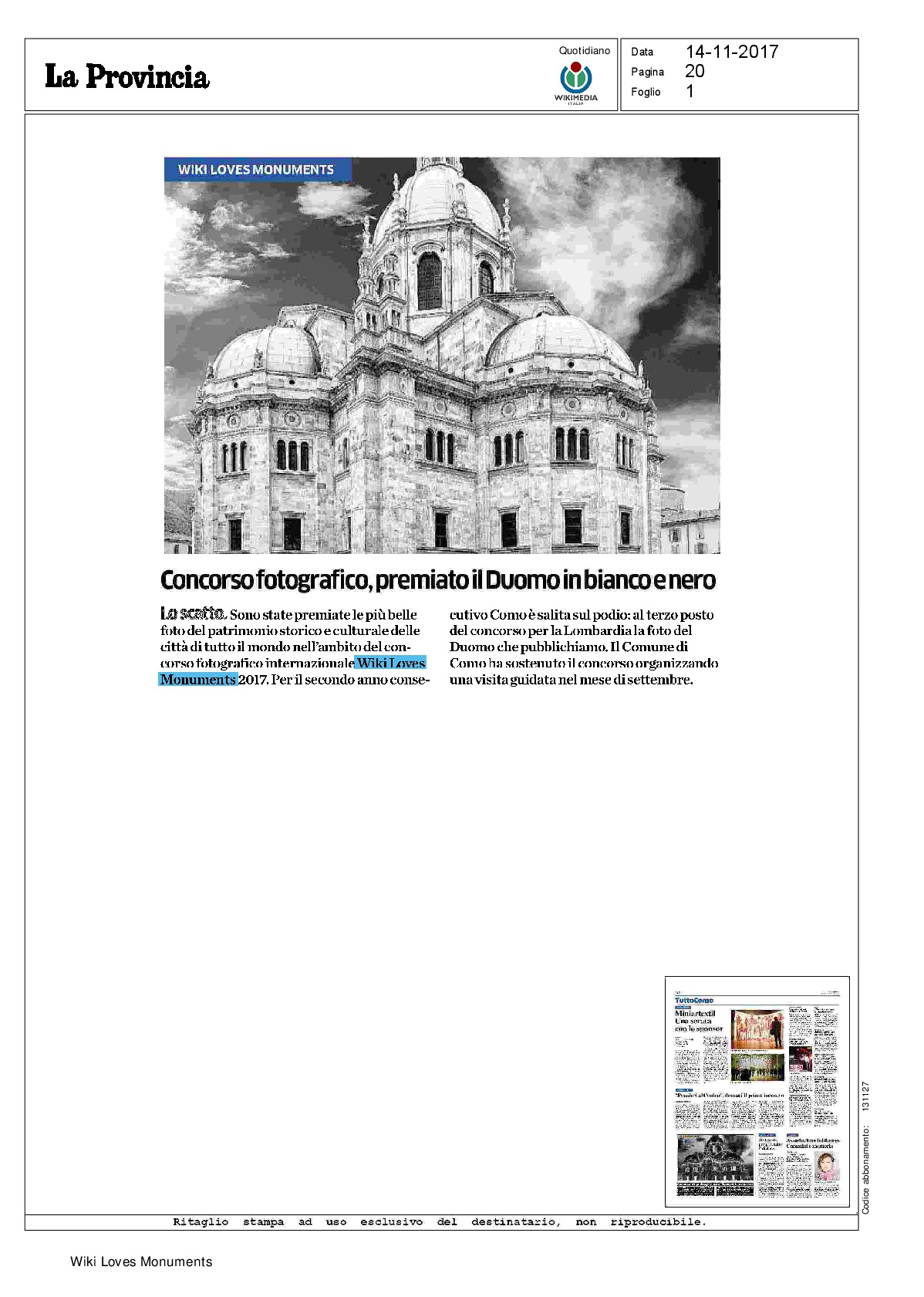 - Como sul podio di Wiki Loves Monuments, Il Giorno - Como