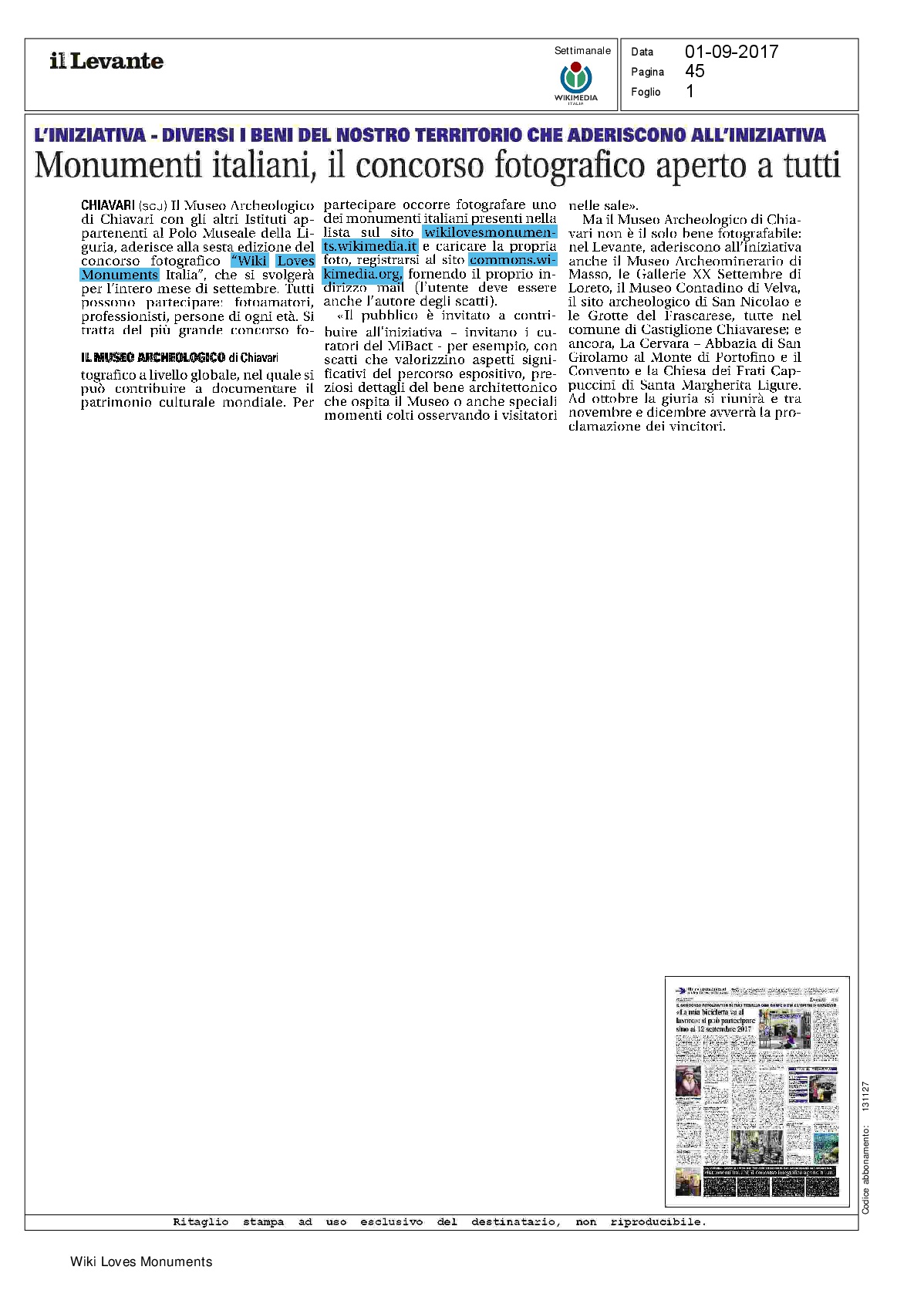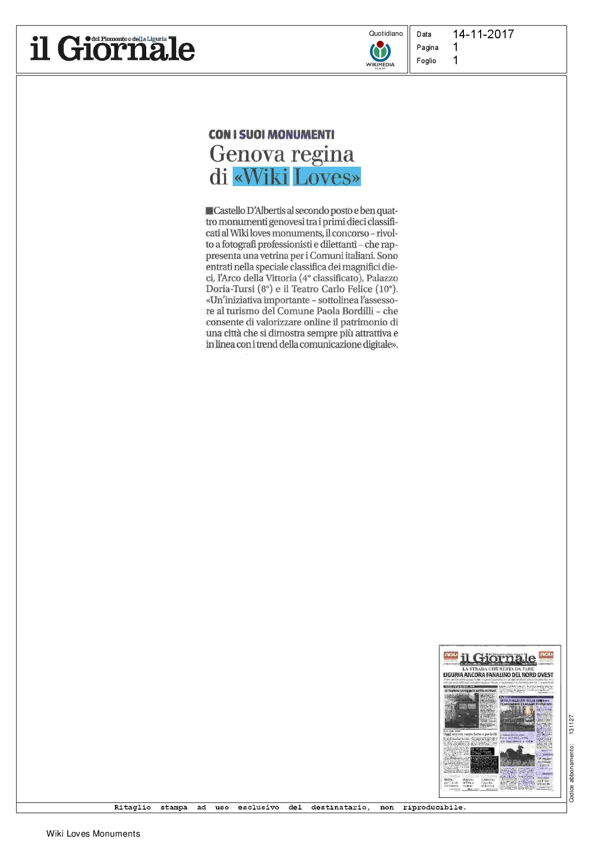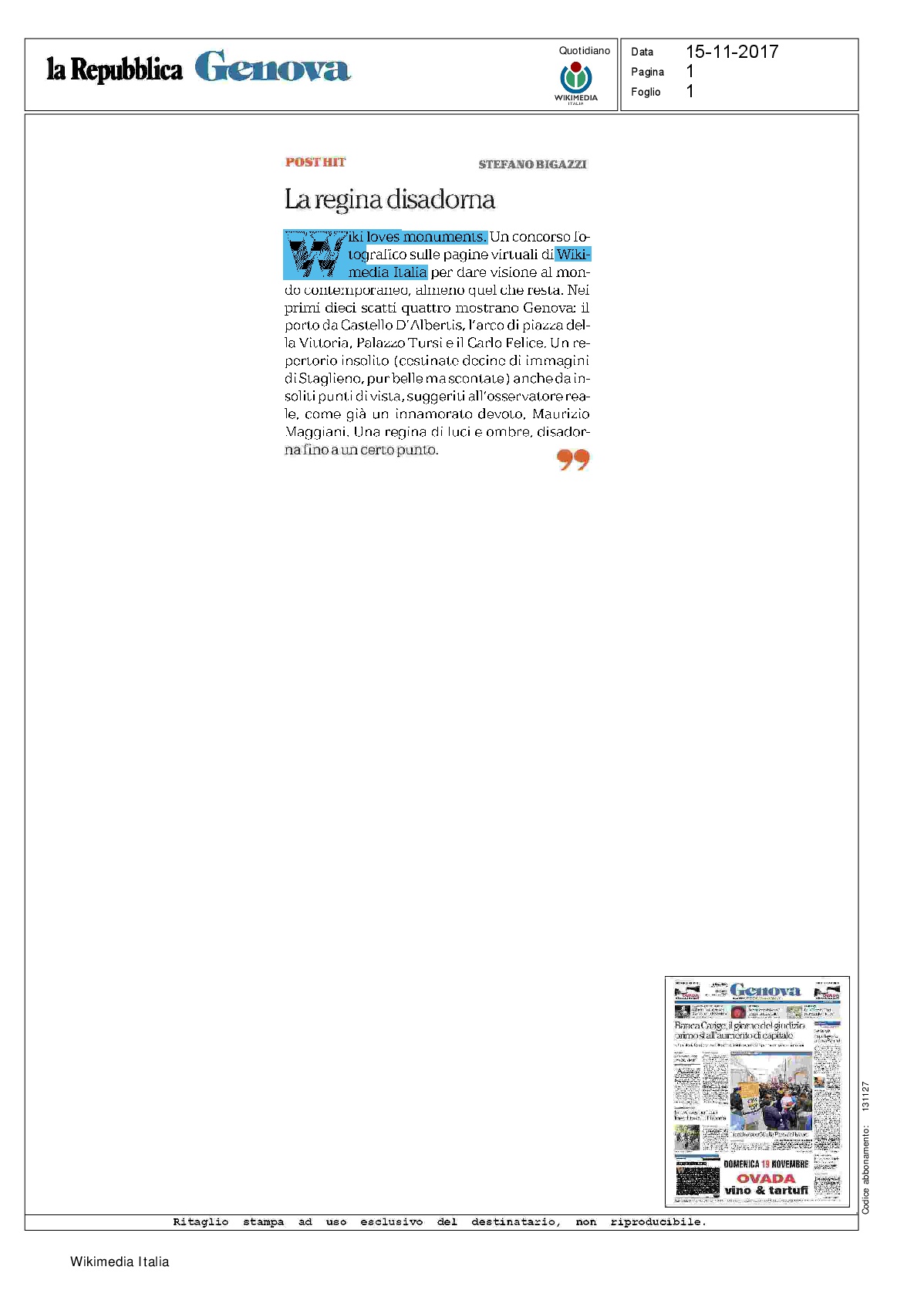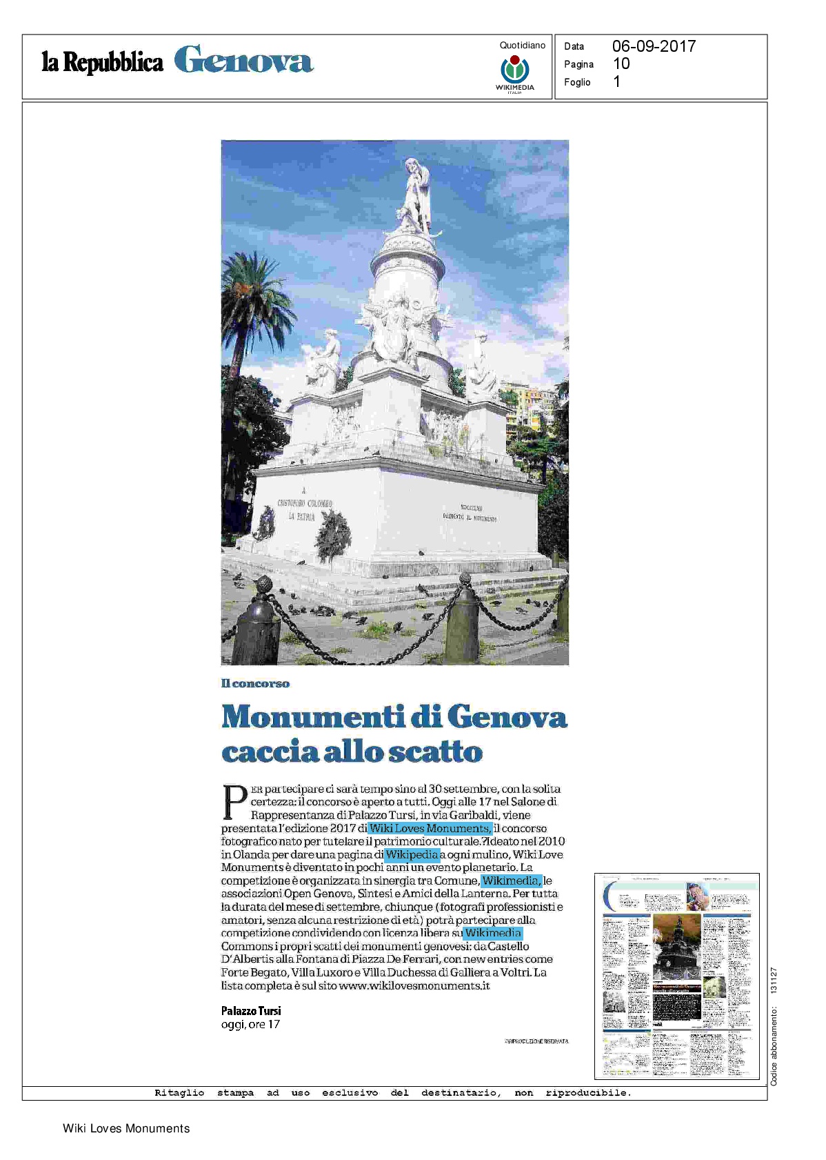 - Wiki loves monuments, Genova sbaraglia la top ten e si aggiudica gli scatti migliori, Repubblica.it - Genova, di Giulia Gotelli