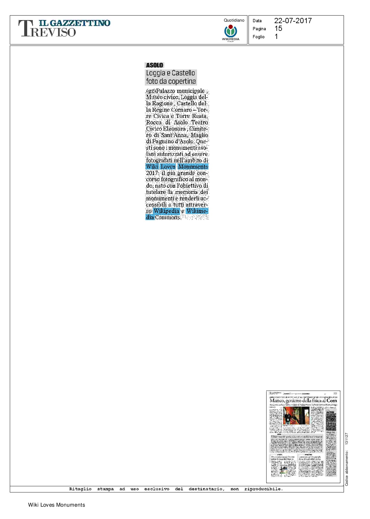 - "Wiki Loves Monuments", i luoghi del concorso, Il Gazzettino Treviso
