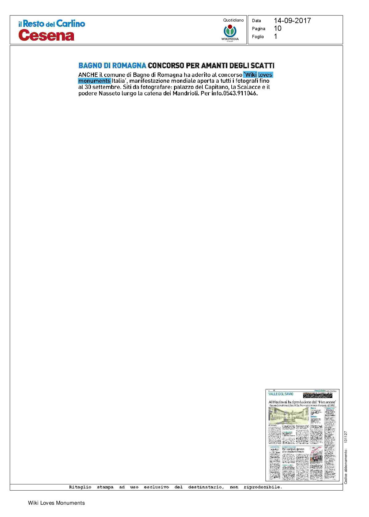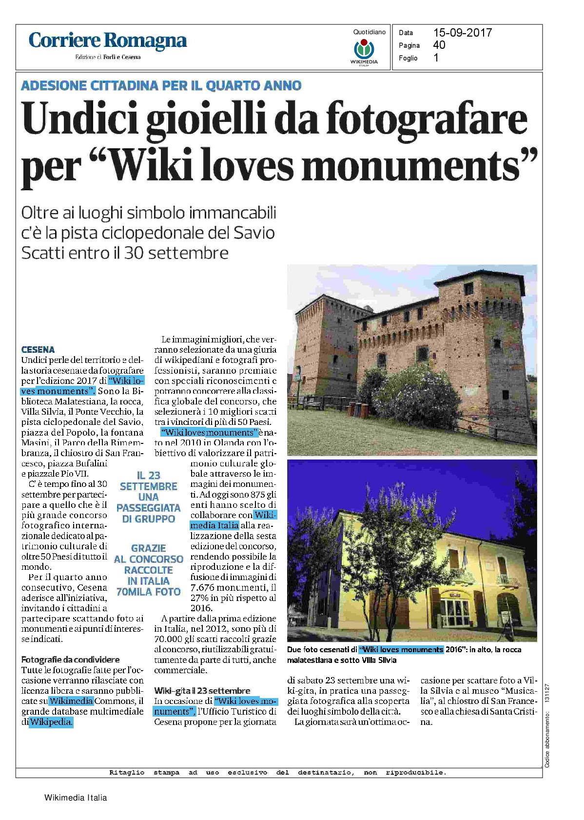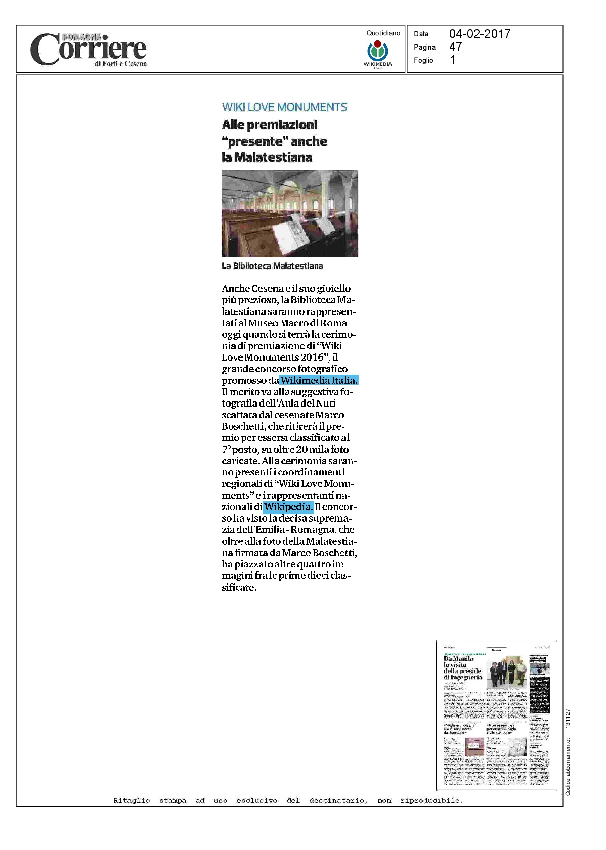 - Wiki Loves Monuments: alle premiazioni presente anche la Malatestiana, Corriere di Romagna - Forlì e Cesena