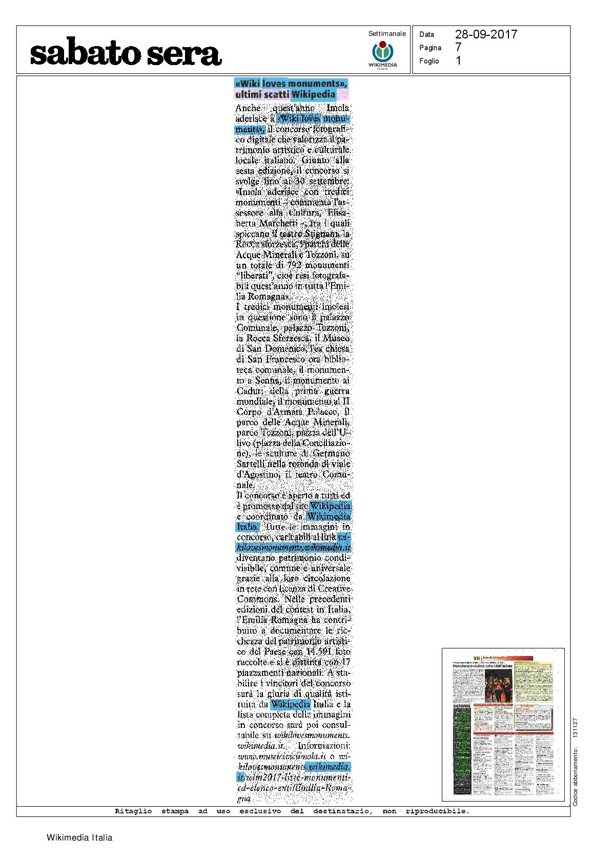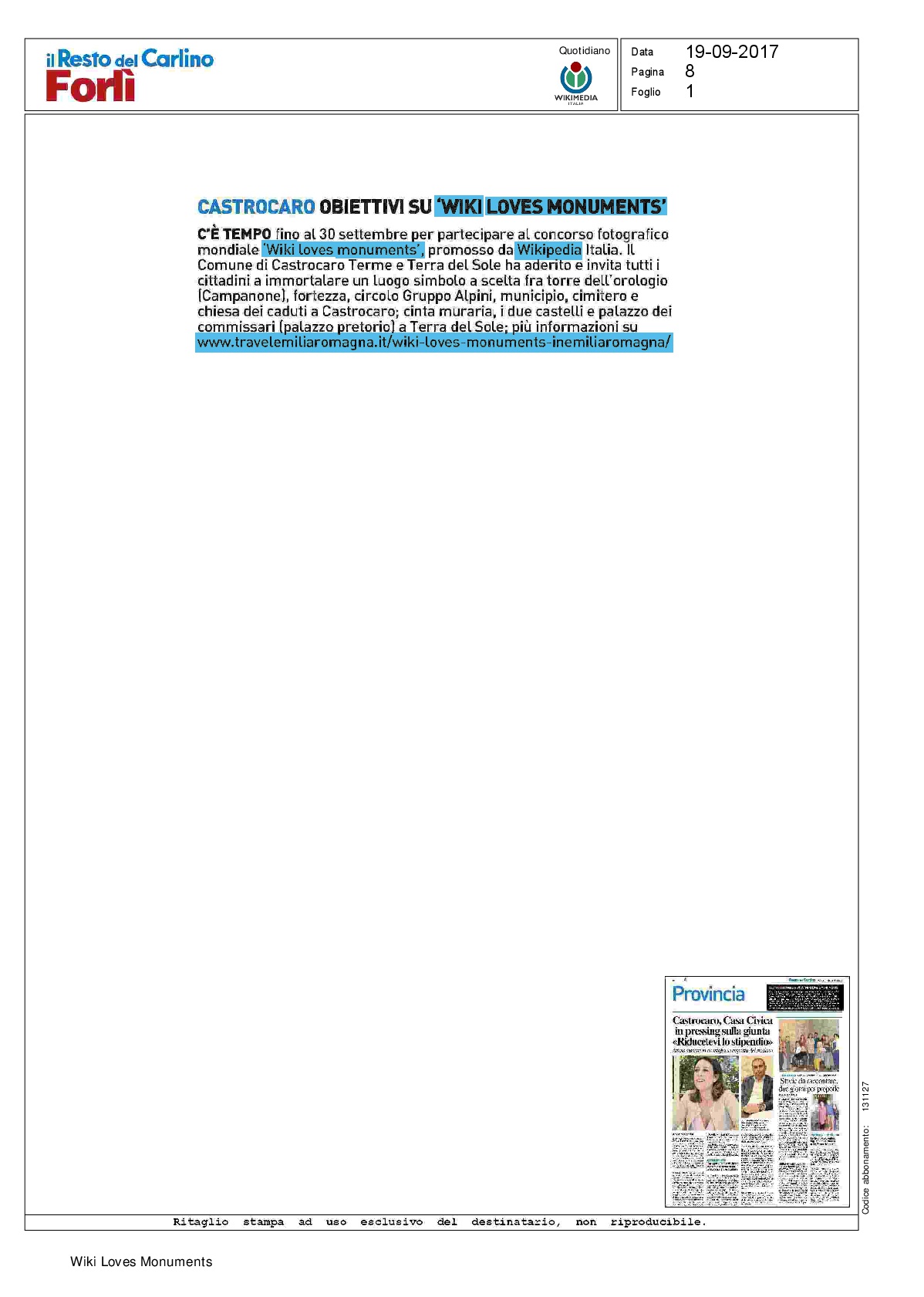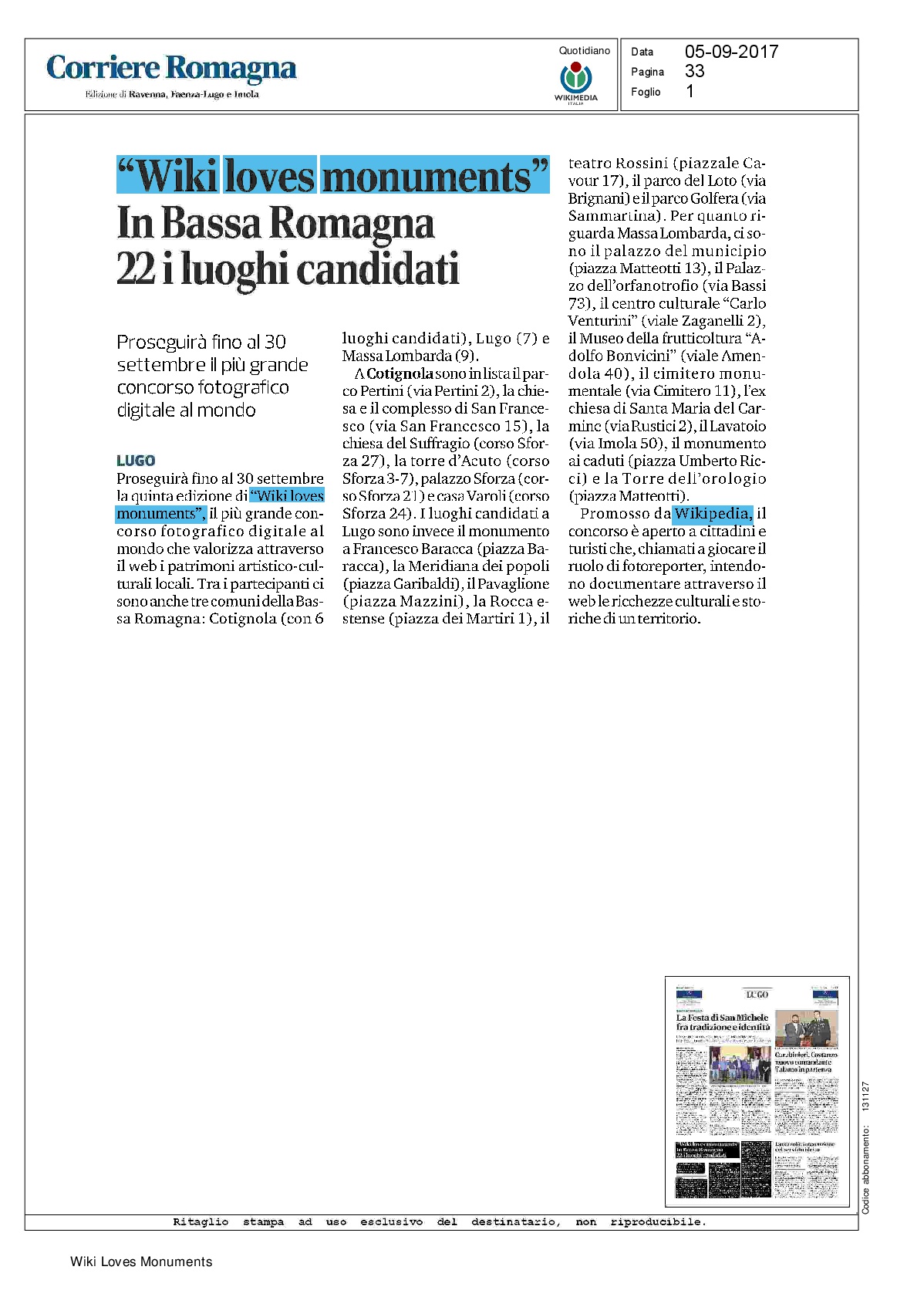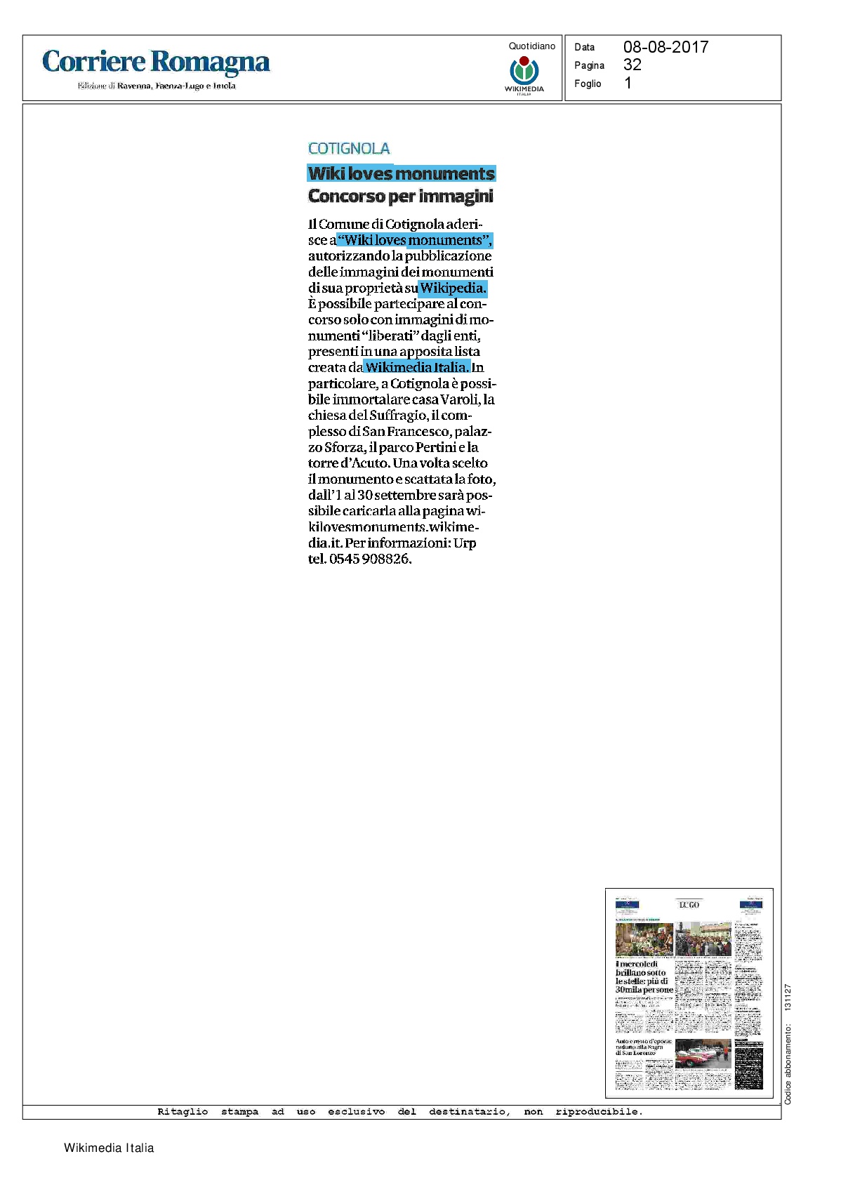 - Wiki Loves Monuments: alle premiazioni presente anche la Malatestiana, Corriere di Romagna - Forlì e Cesena