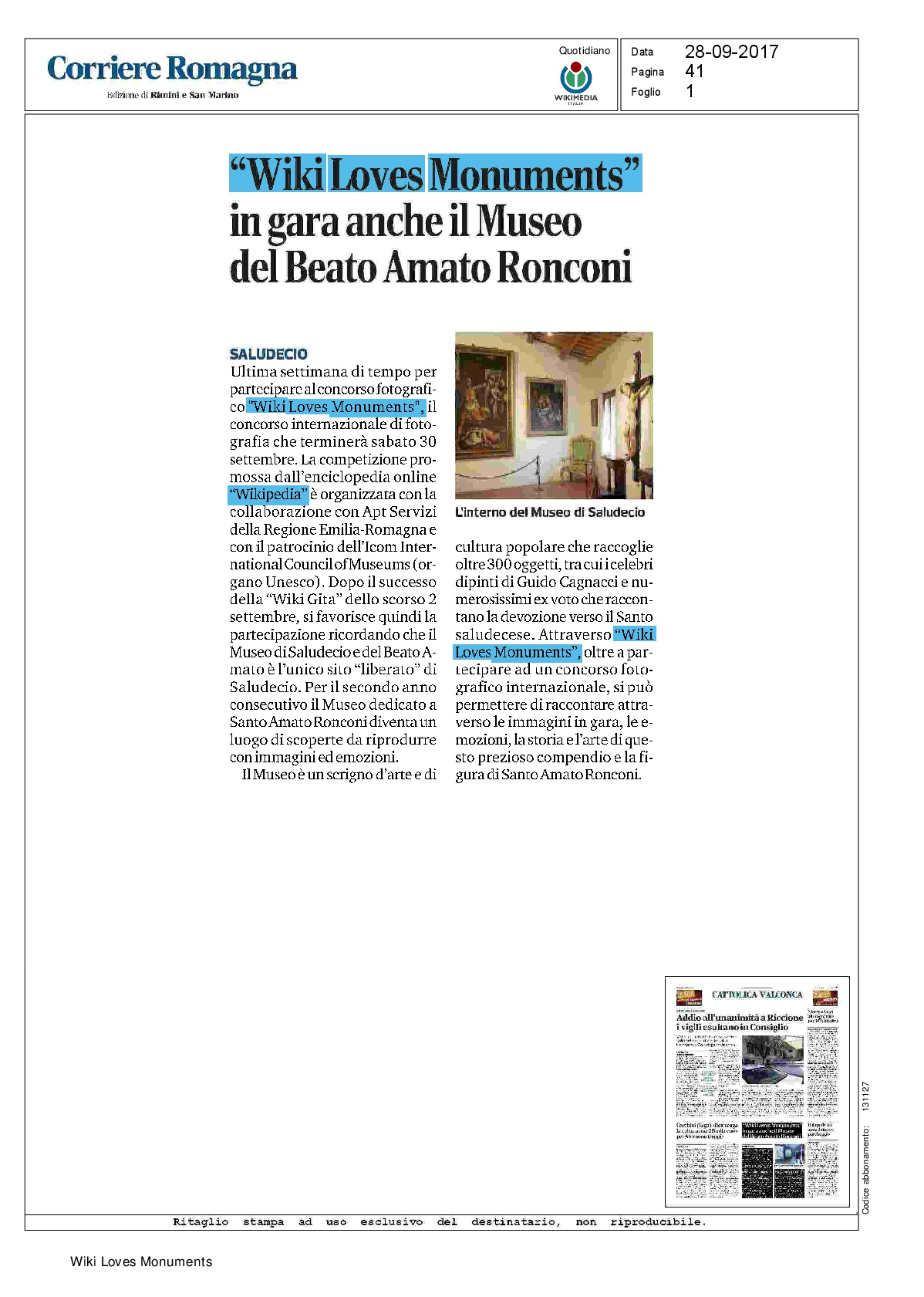 - "Wiki Loves Monuments", in gara anche il Museo del Beato Amato Ronconi, Corriere Romagna - Edizione di Rimini e San Marino