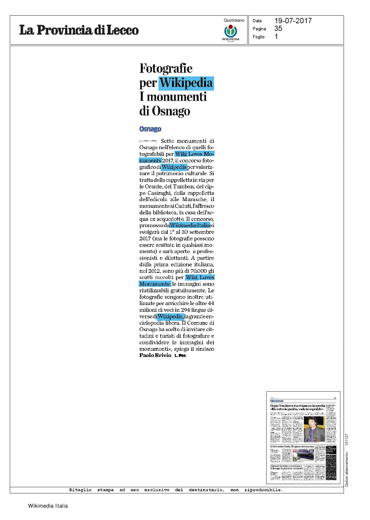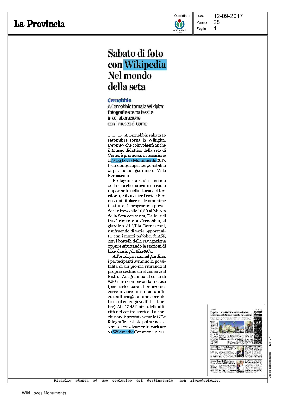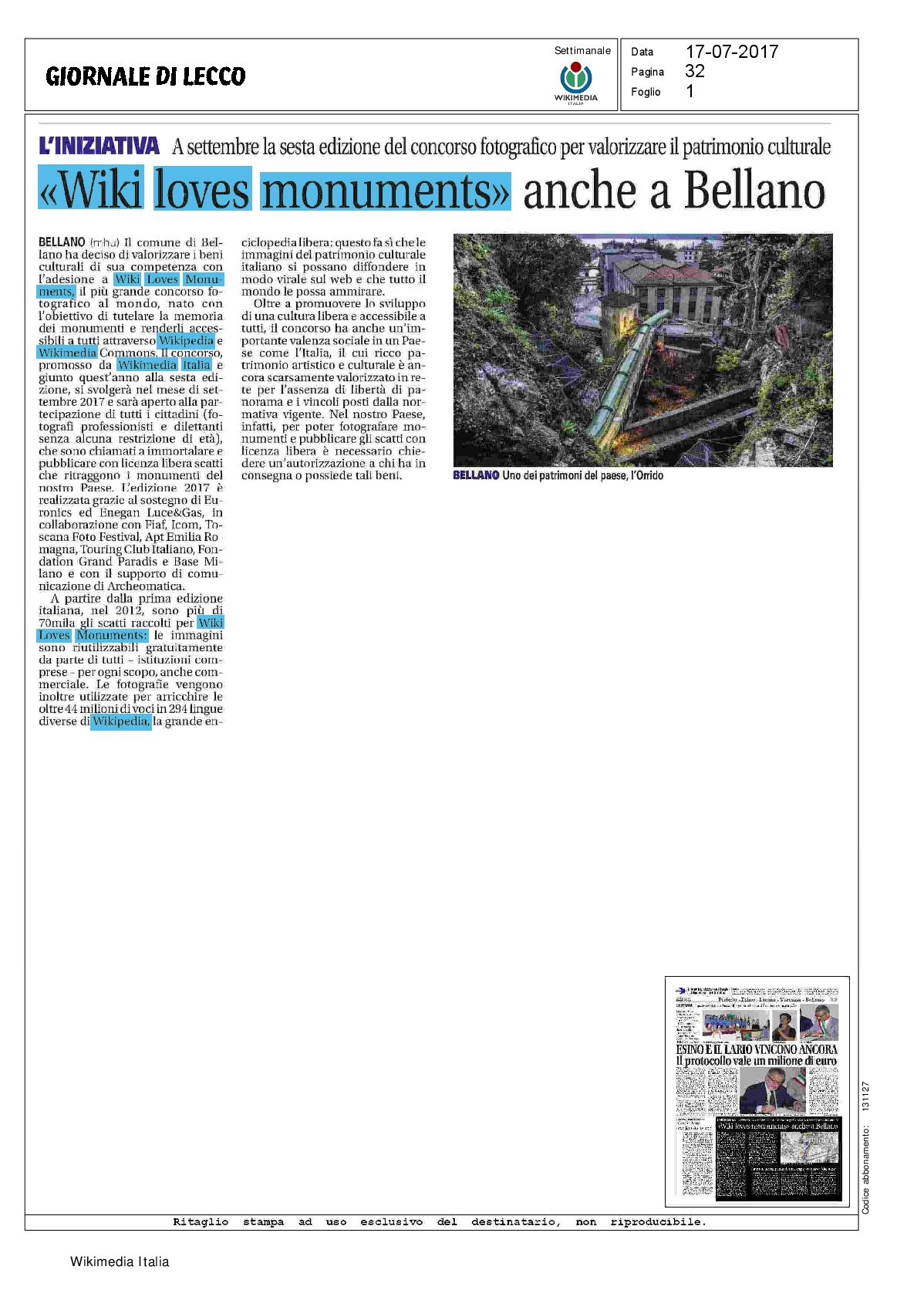 - "Wiki Loves Monuments", si inaugura la mostra di foto , La Provincia di Lecco