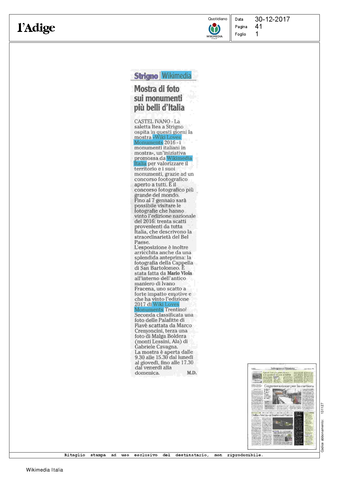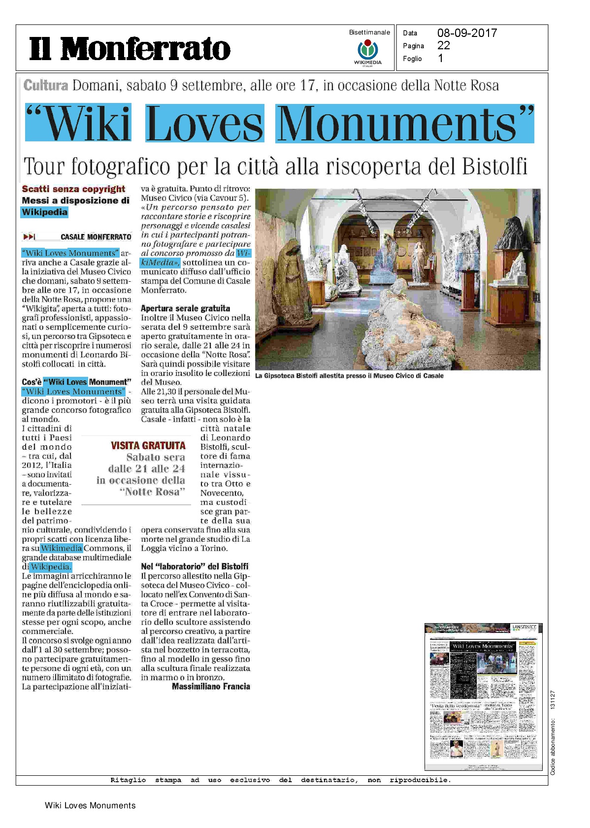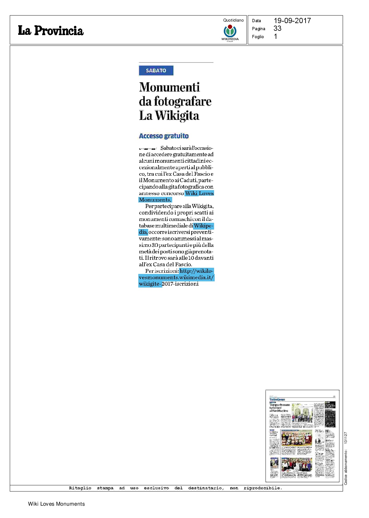 - "Wiki Loves Monuments", si inaugura la mostra di foto , La Provincia di Lecco