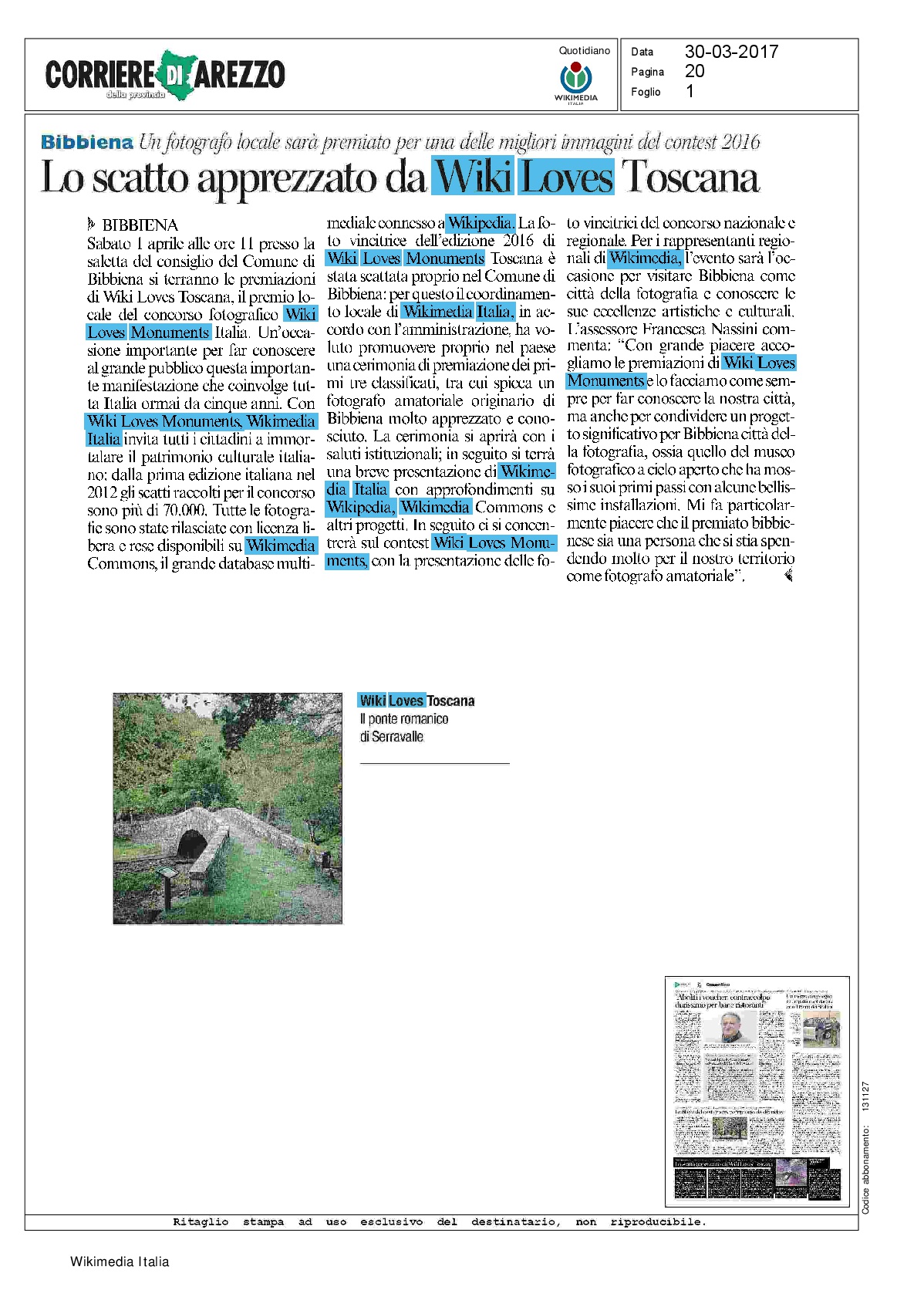 - Lo scatto apprezzato da Wiki Loves Toscana, Corriere della provincia di Arezzo