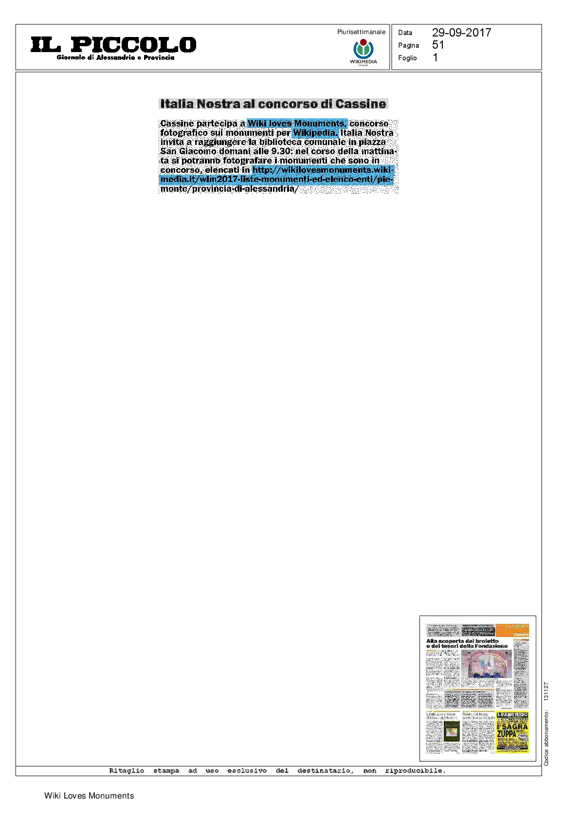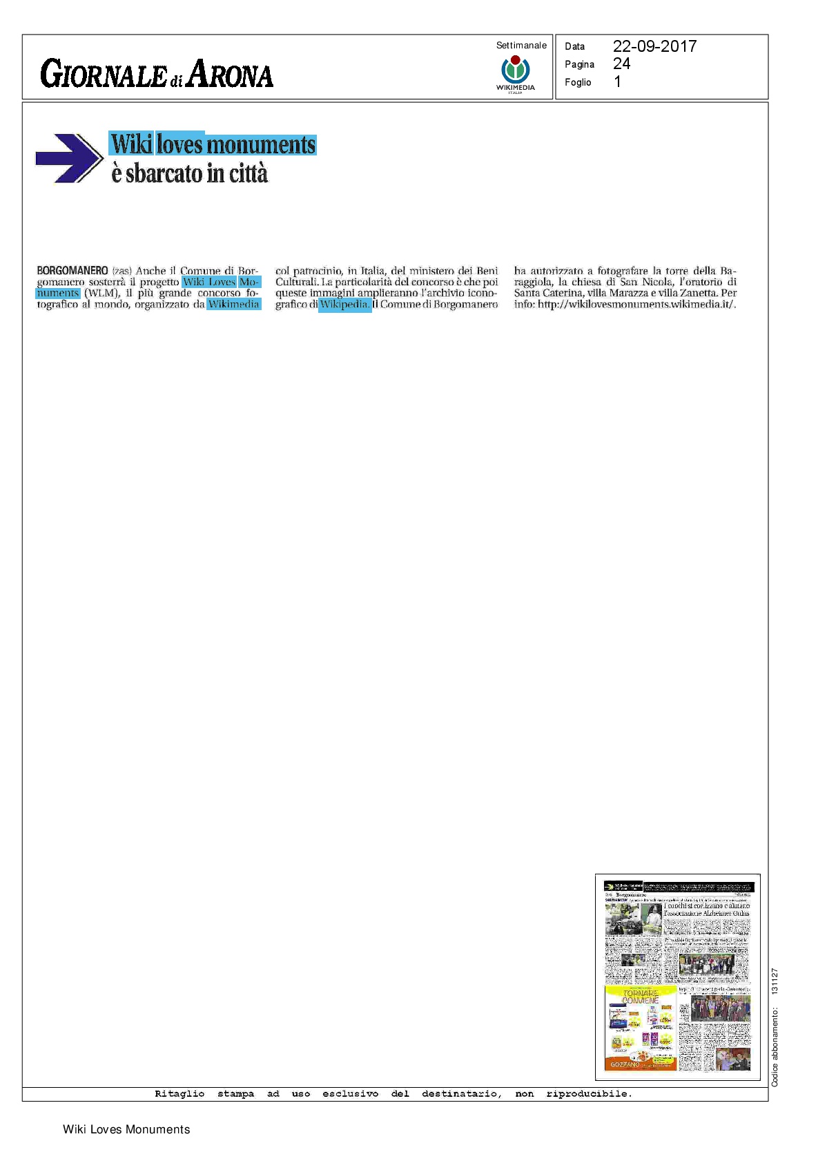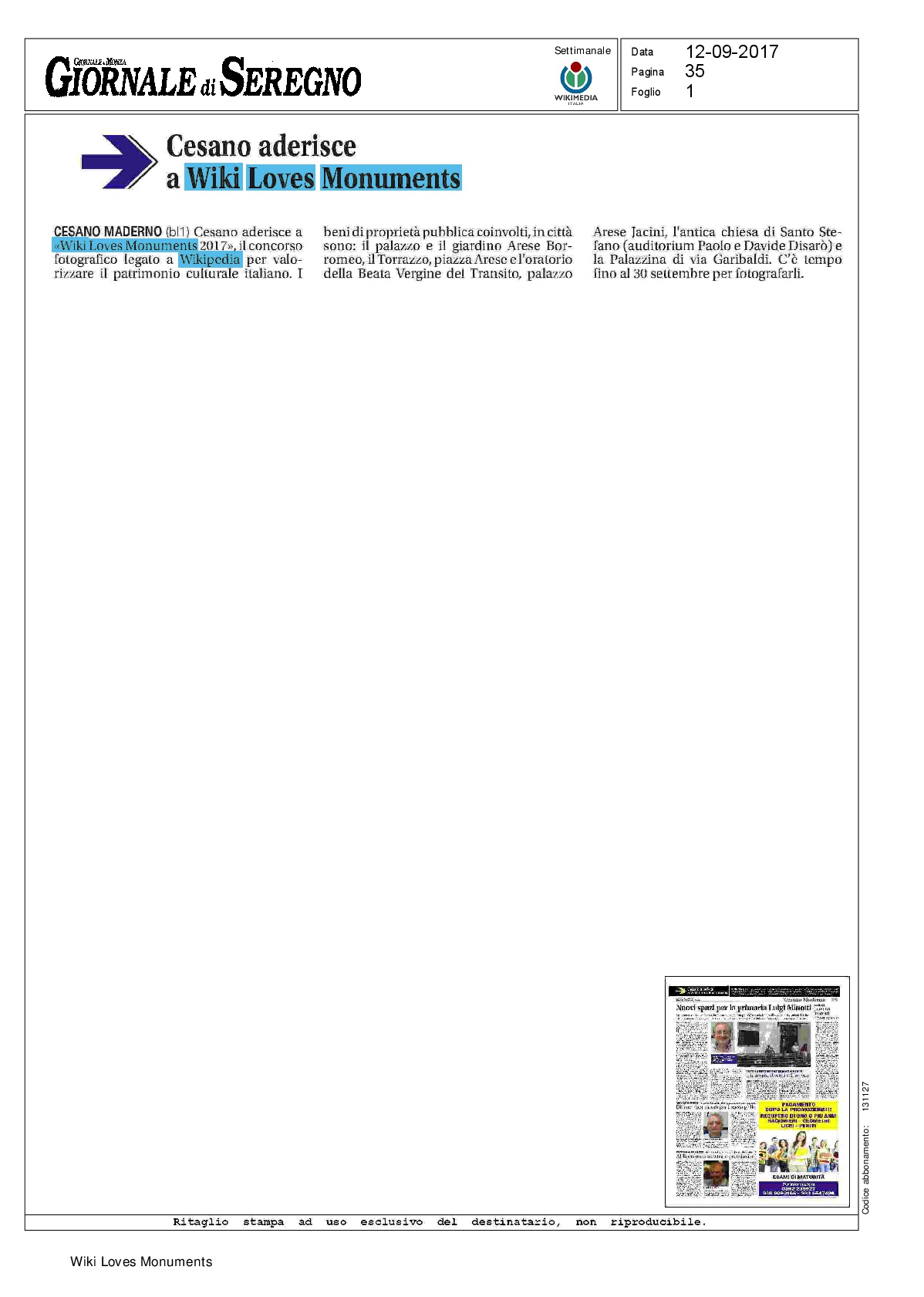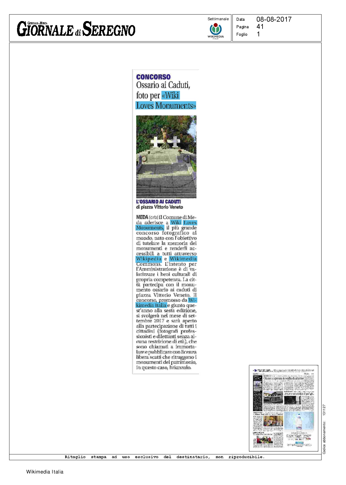 - La mostra fotografica organizzata da Wikipedia debutta alla Lo.Co: 1300 monumenti in paese, di Paolo Brambilla, Giornale di Merate