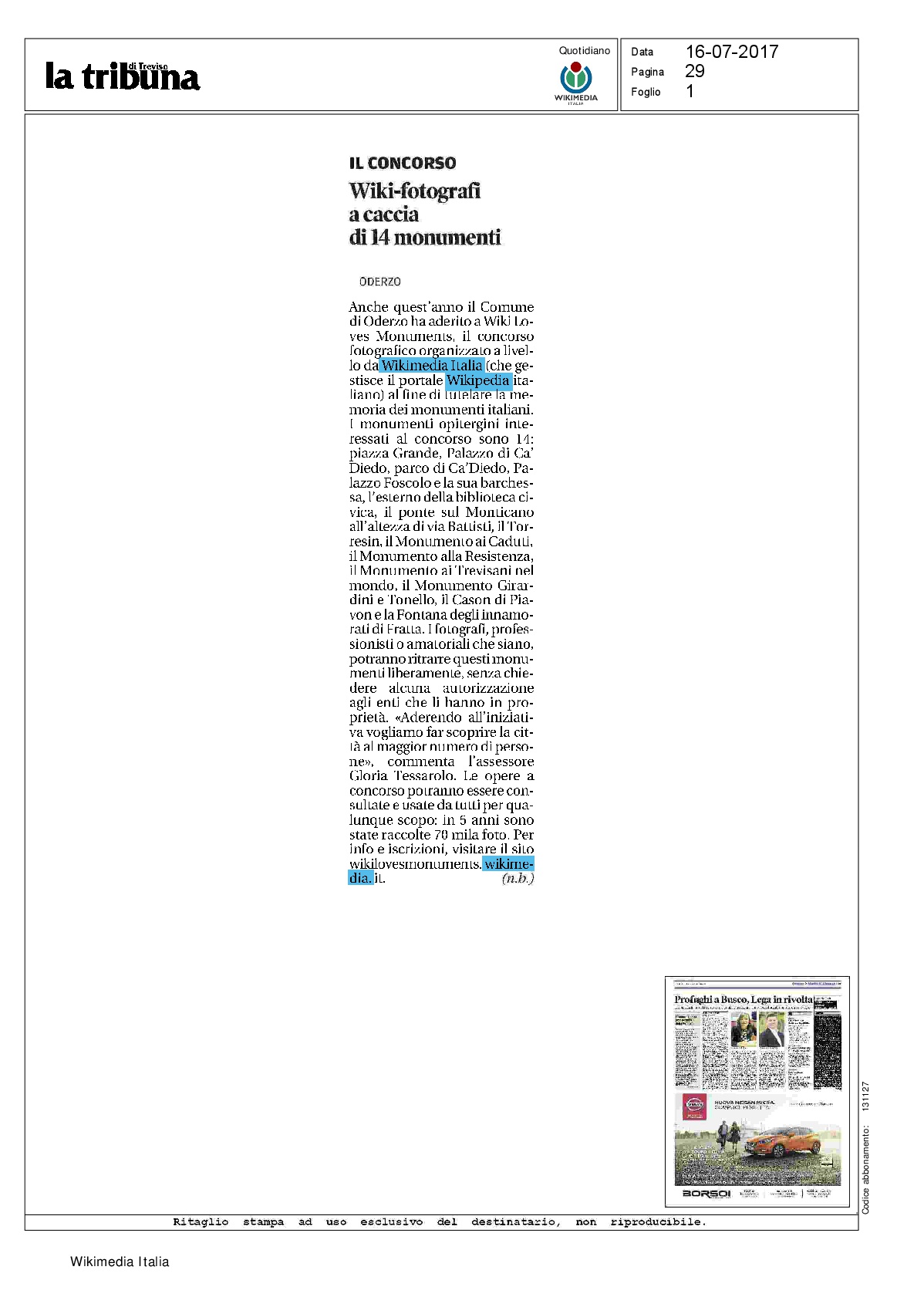 - "Wiki-fotografi a caccia di 14 monumenti, La Tribuna di Treviso