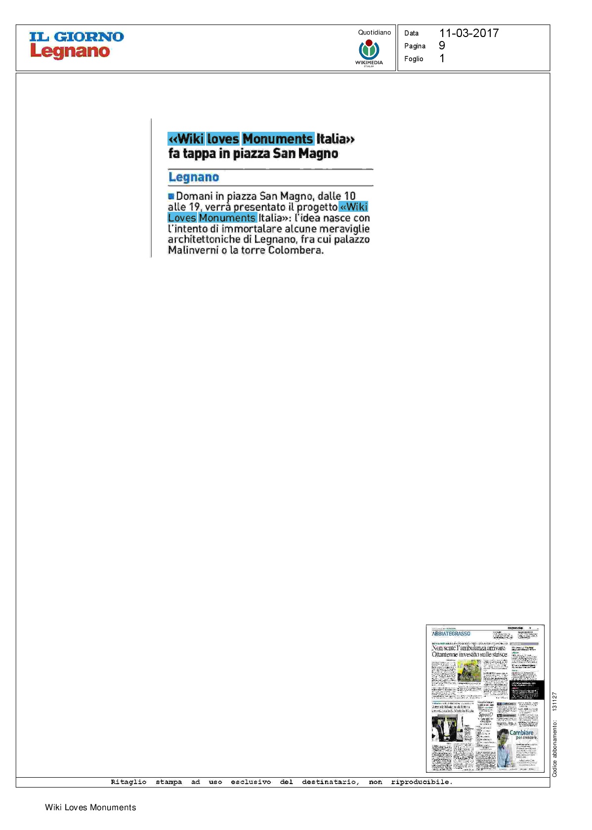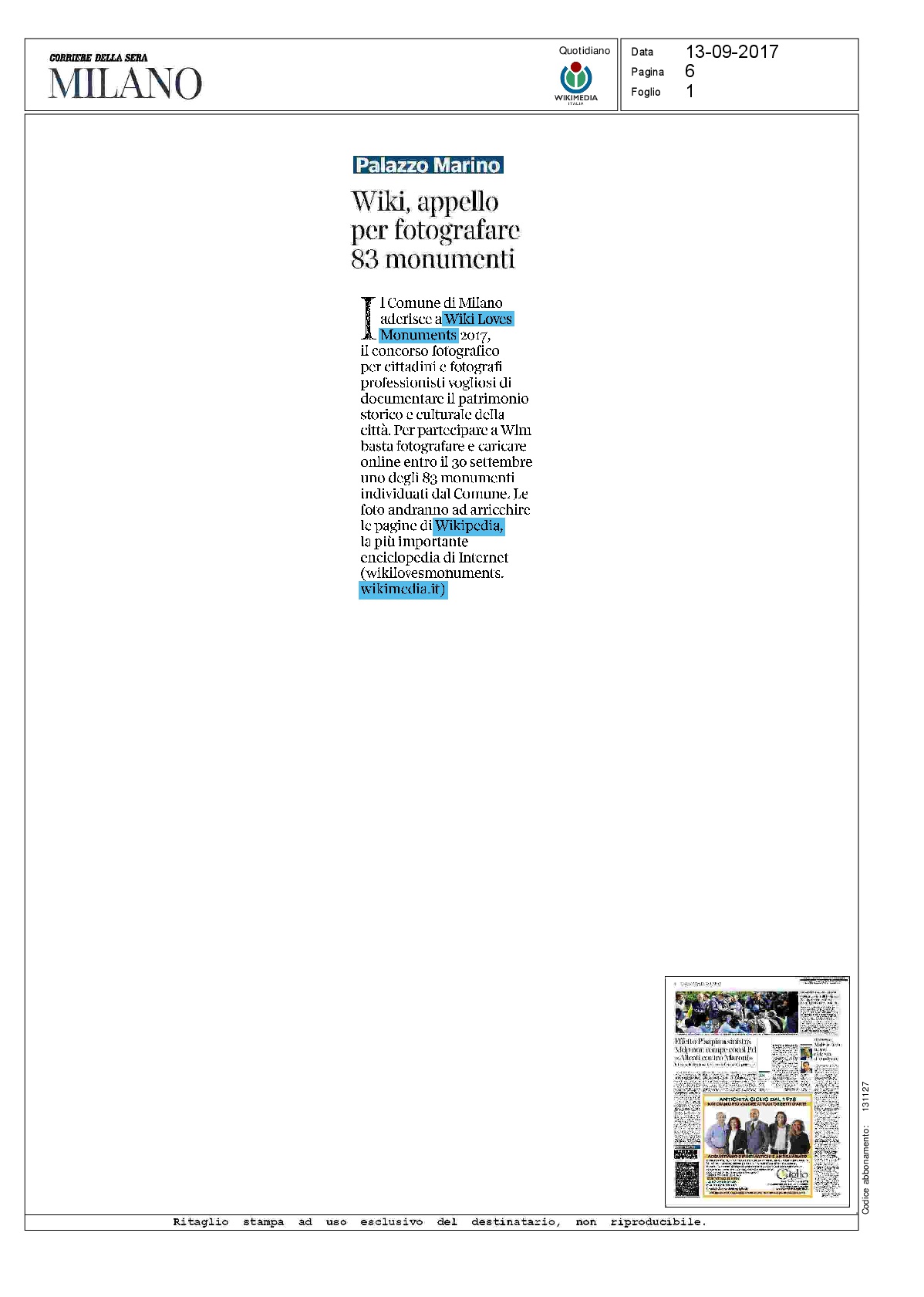 - Wiki Loves Monuments 2017 racconta Milano in 999 scatti, Il Giorno