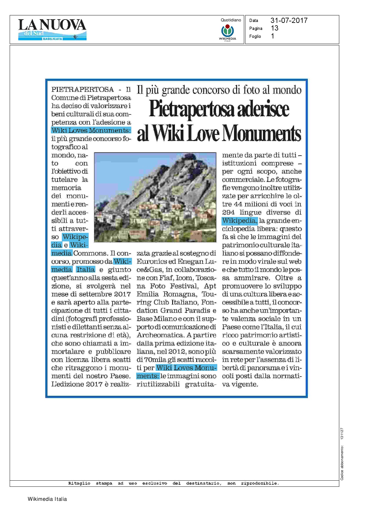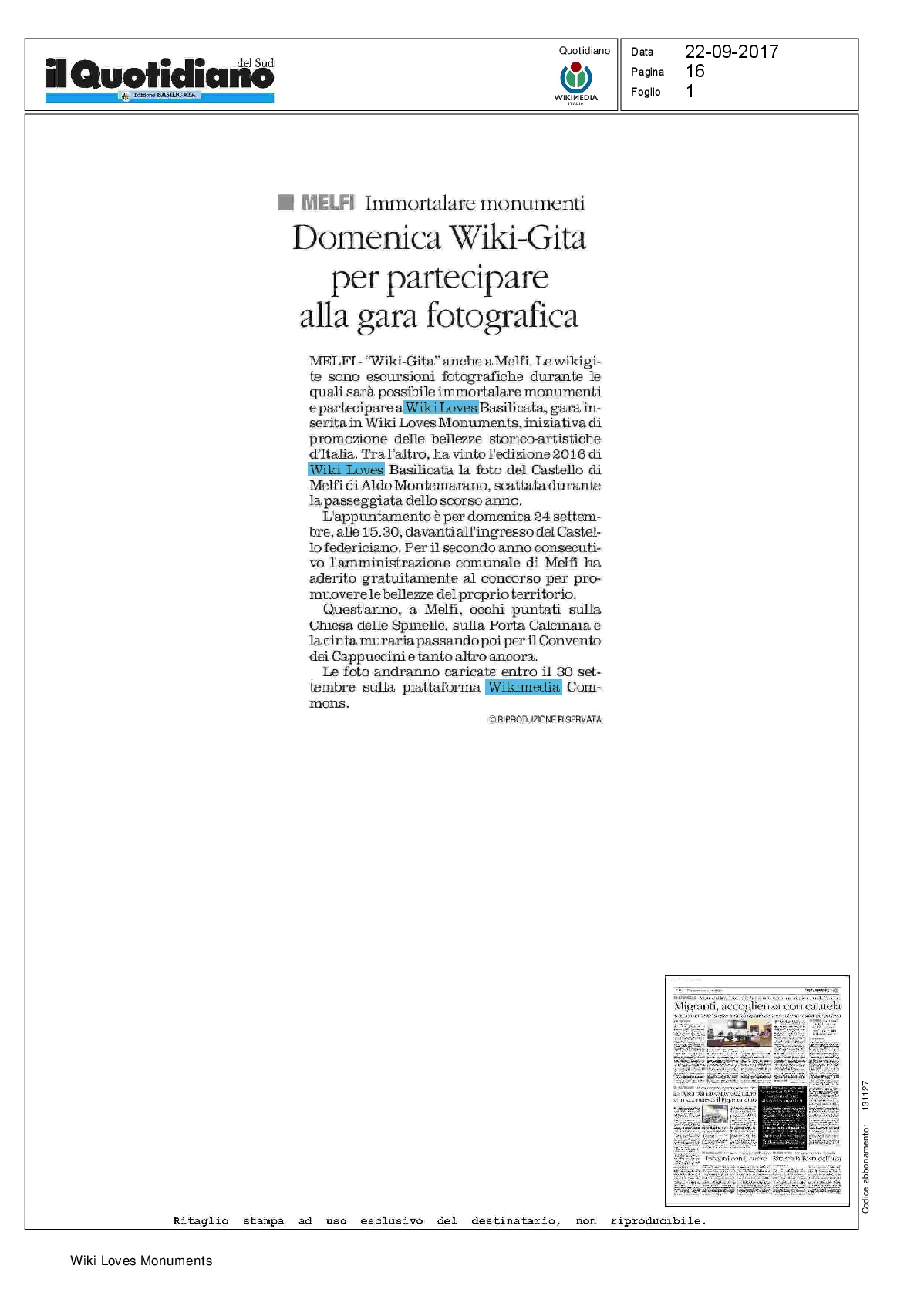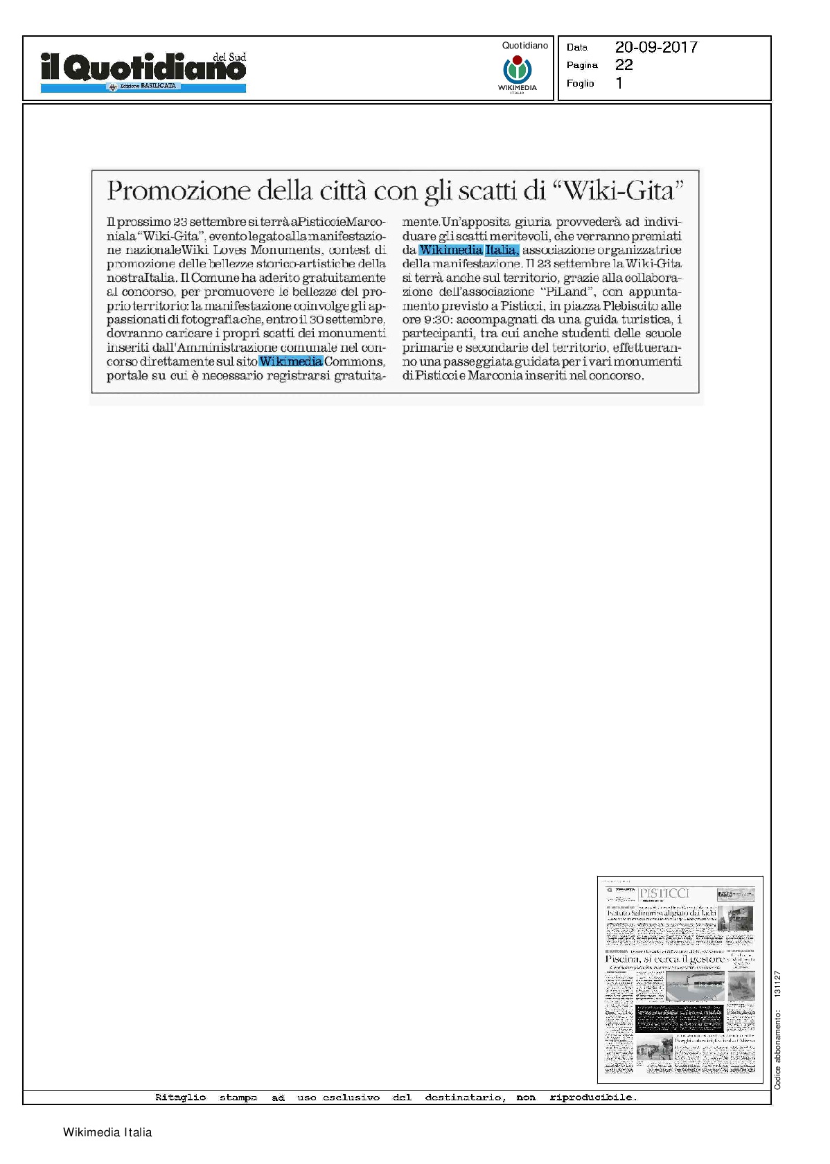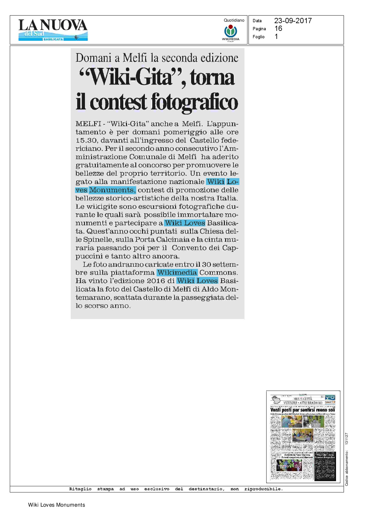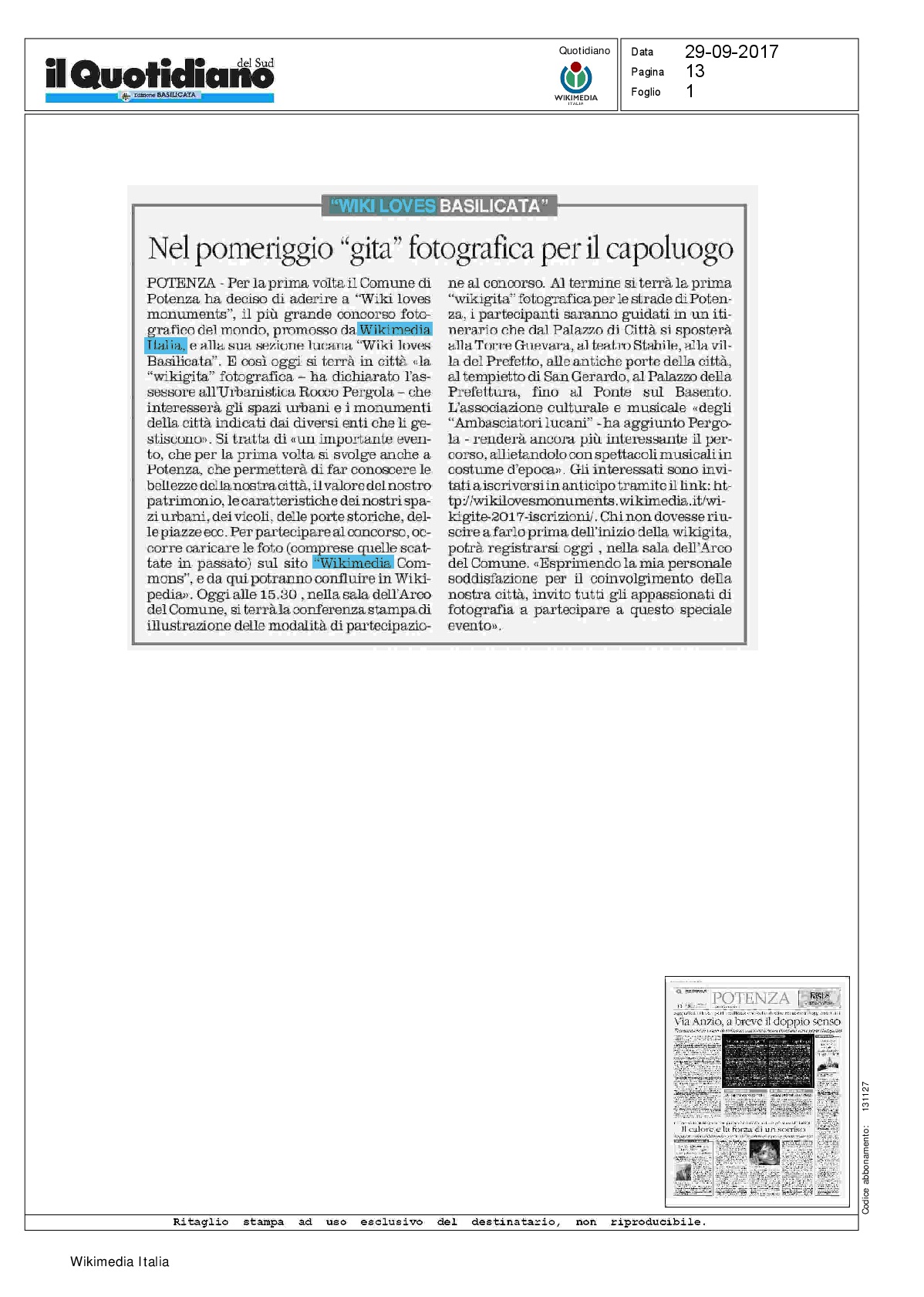 - Wikimedia Italia due mostre di foto nella Pinacoteca, La Gazzetta della Basilicata, di Lorenza Colicigno