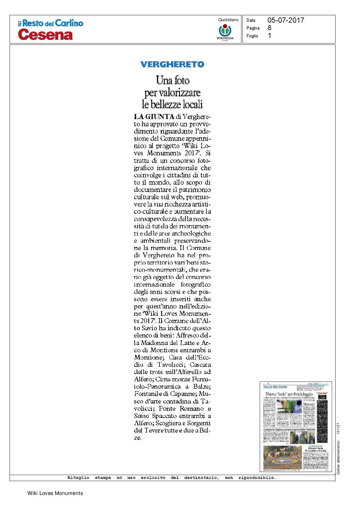 - Una foto per valorizzare le bellezze locali, Il Resto del Carlino - Cesena