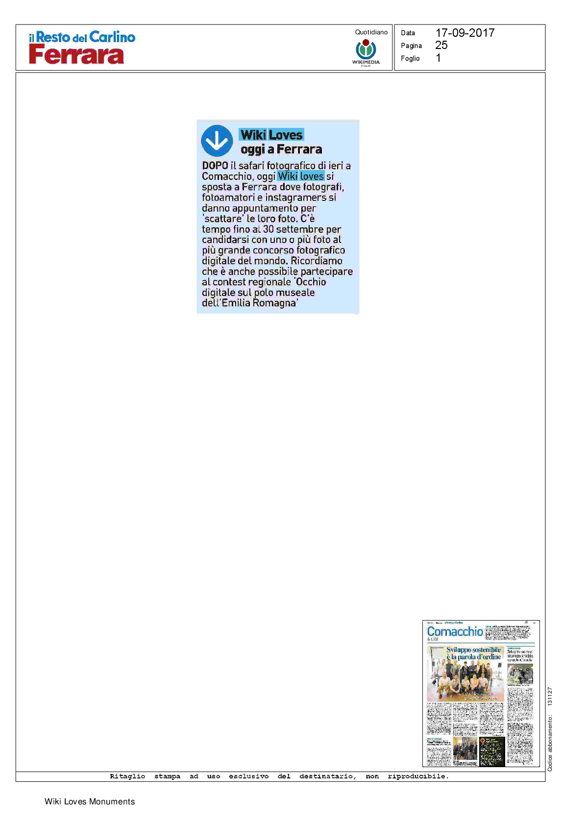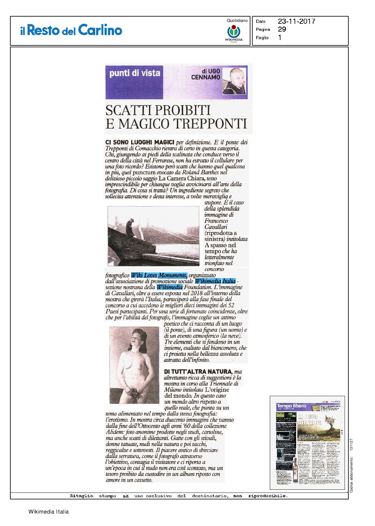 - Wiki Loves Monuments 2017: vince Comacchio, Milano in 999 fotografie, Il Giorno