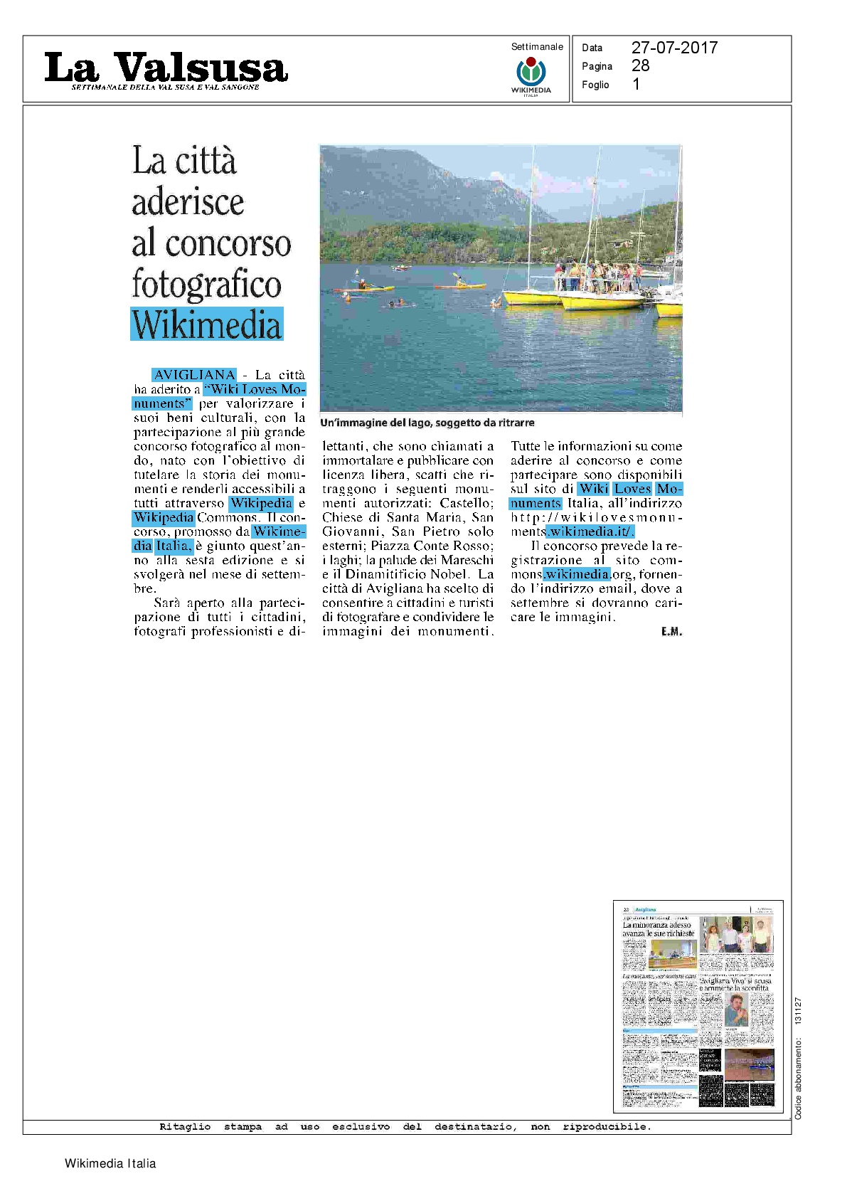 - La fotografia del castello di Avigliana vince il 6° posto nazionale del concorso Wiki Loves Monuments 2017 , L'Agenda news