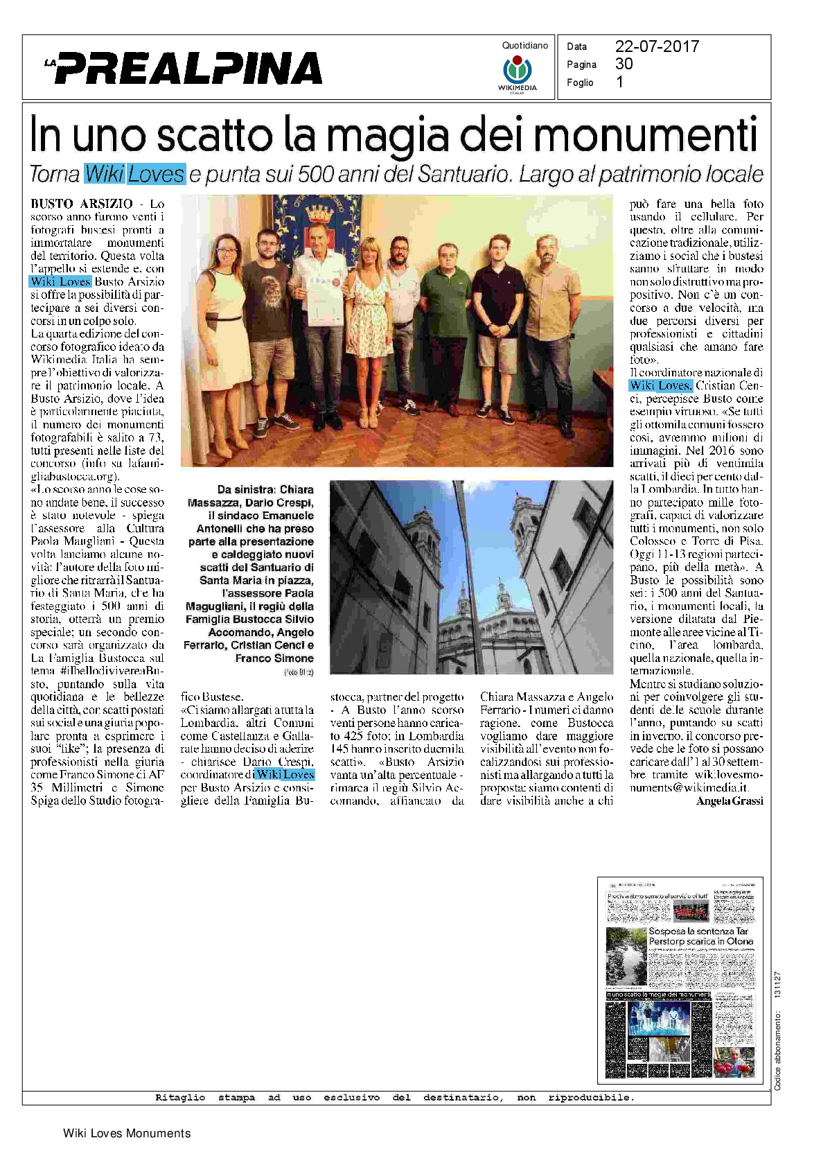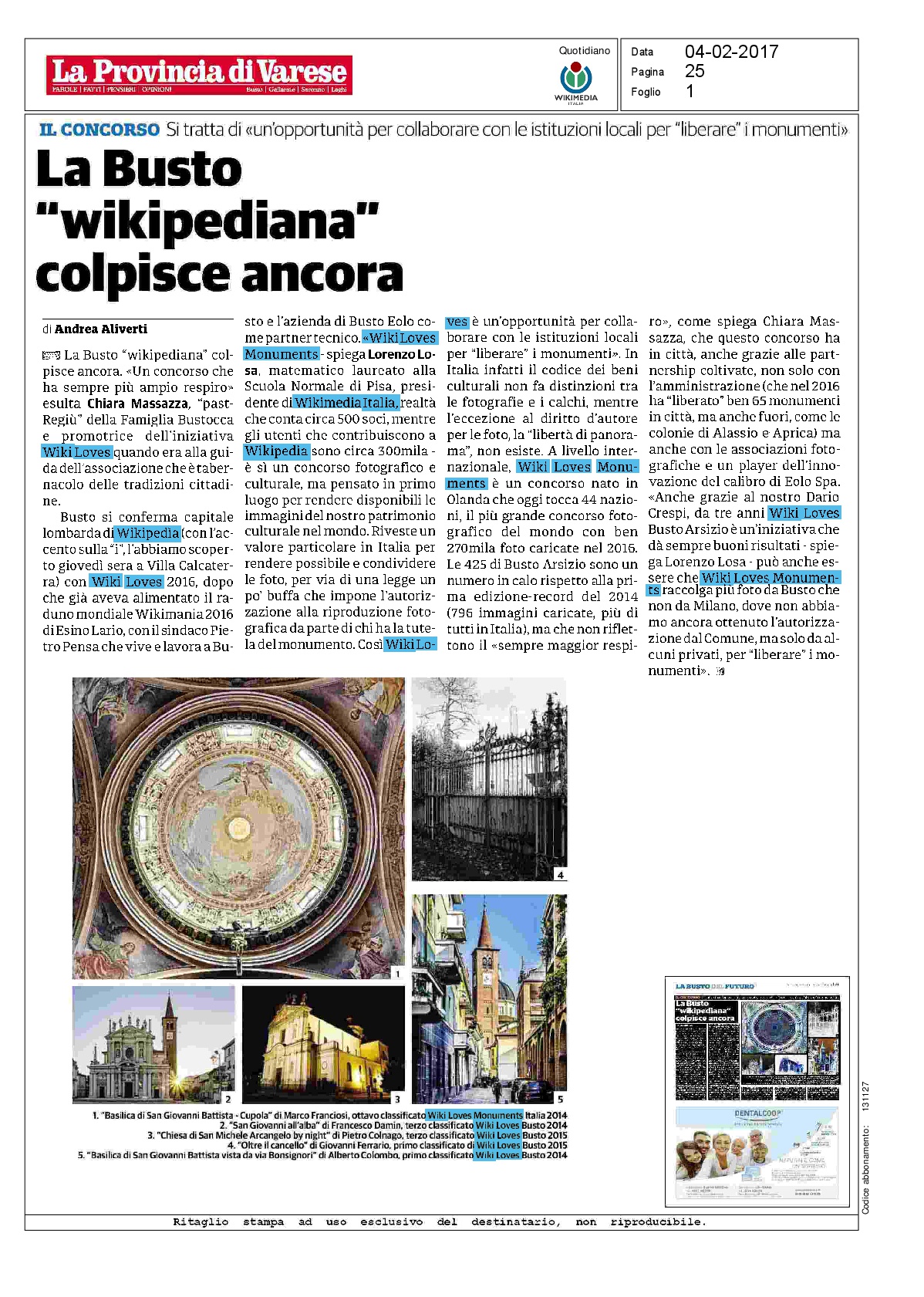 - Wiki Loves Busto Arsizio 2016, il concorso che regala il successo, La Provincia di Varese