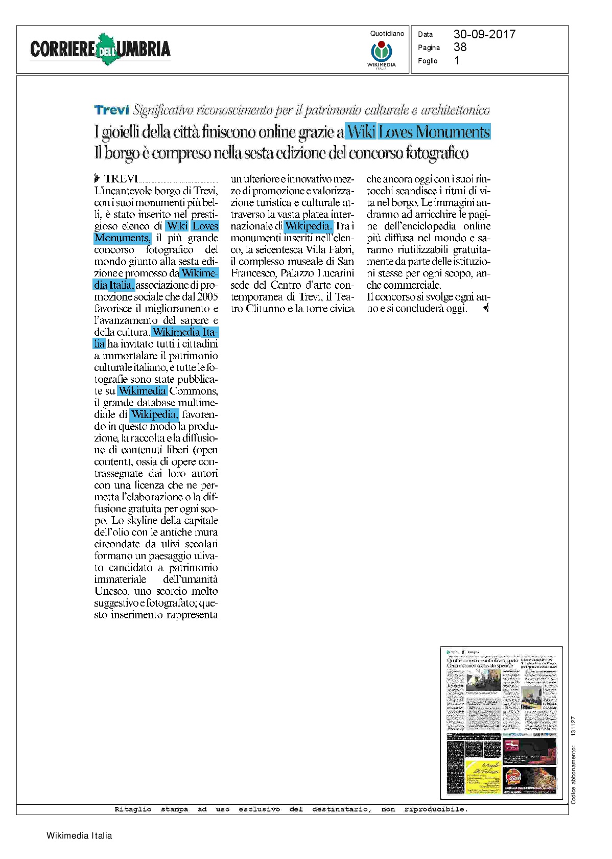 - I gioielli della città finiscono online grazie a Wiki Loves monuments, Corriere dell'Umbria