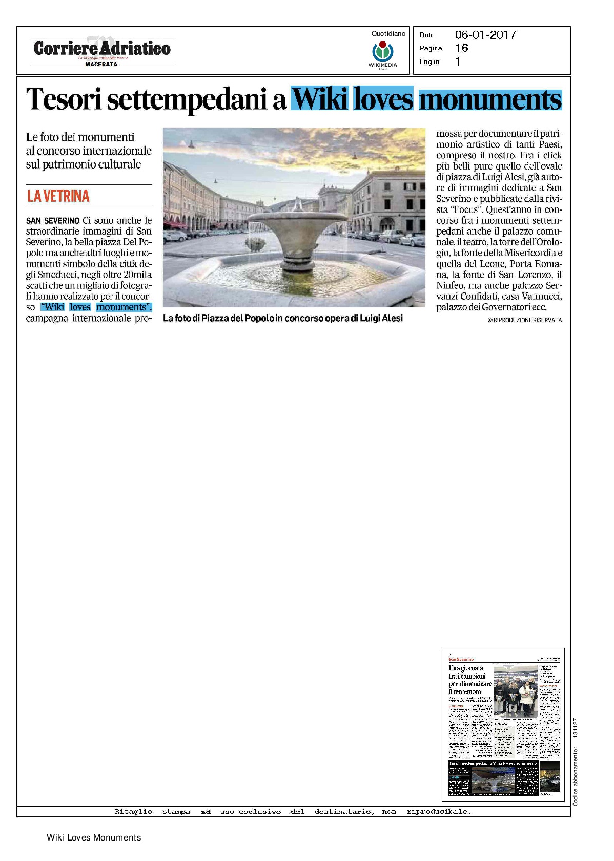 - Tesori settempedani a Wiki loves monuments , Corriere Adriatico - Macerata