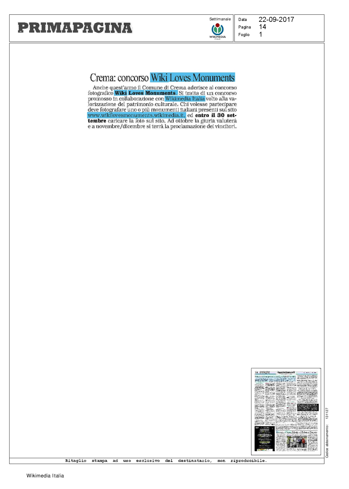 - Riforma.it: Continua la "liberazione" delle opere d'arte: Il concorso fotografico annuale di Wiki Loves Monument continua il suo tour in tutta Italia, di Susanna Ricci