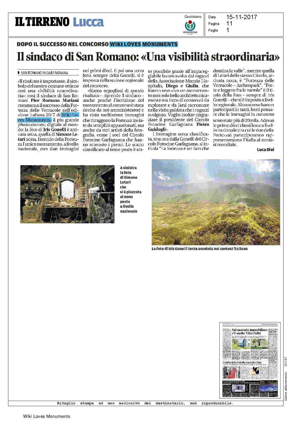 - Il sindaco di San Romano: "Una visibilità straordinaria", Il Tirreno - Lucca