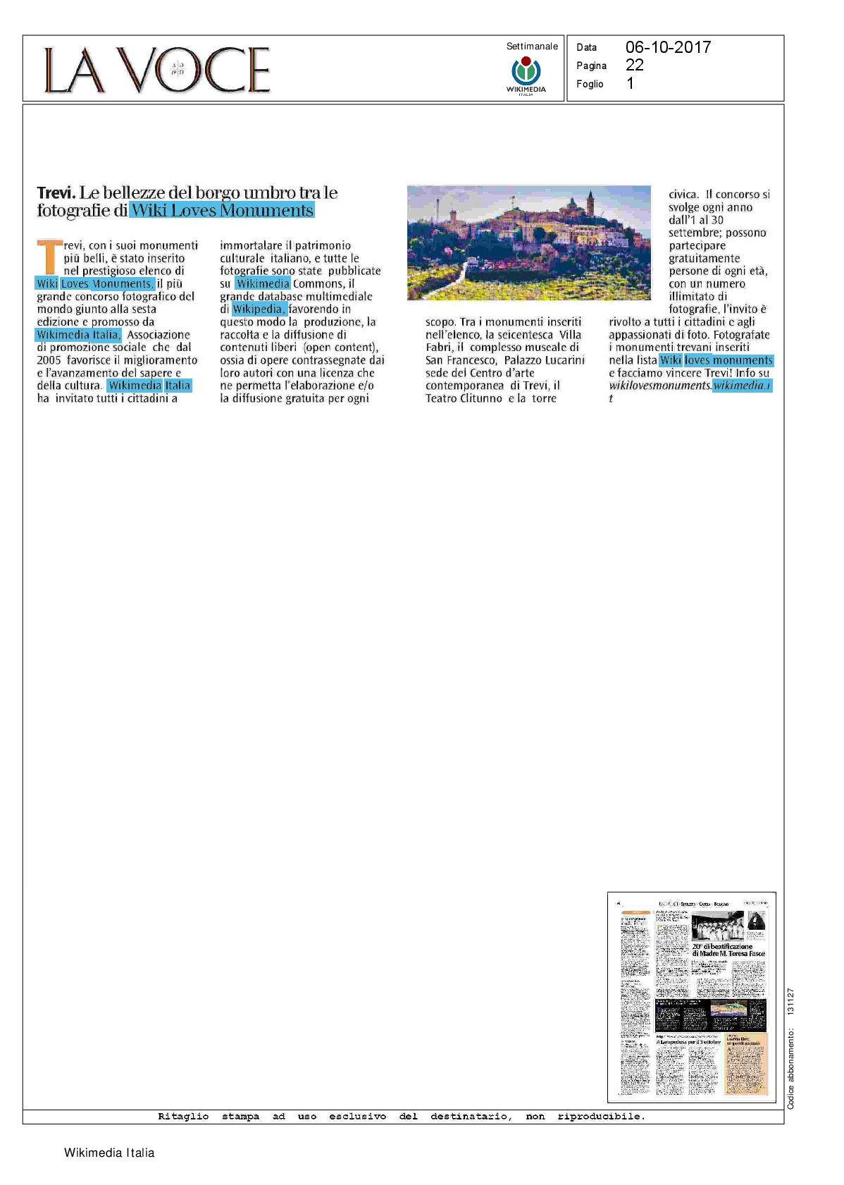 - Trevi. Le bellezze del borgo umbro tra le fotografie di Wiki Loves Monuments, La voce - Perugia