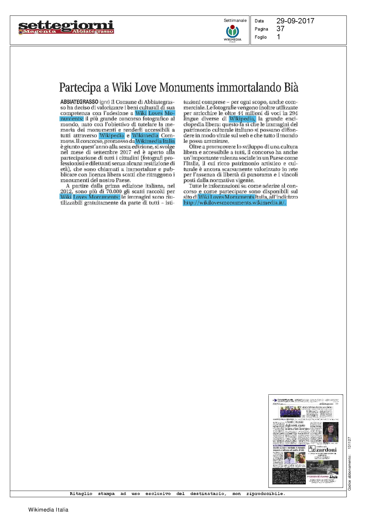- Partecipa a Wiki loves monuments immortalando Bià, Sette giorni - Magenta e Abbiategrasso