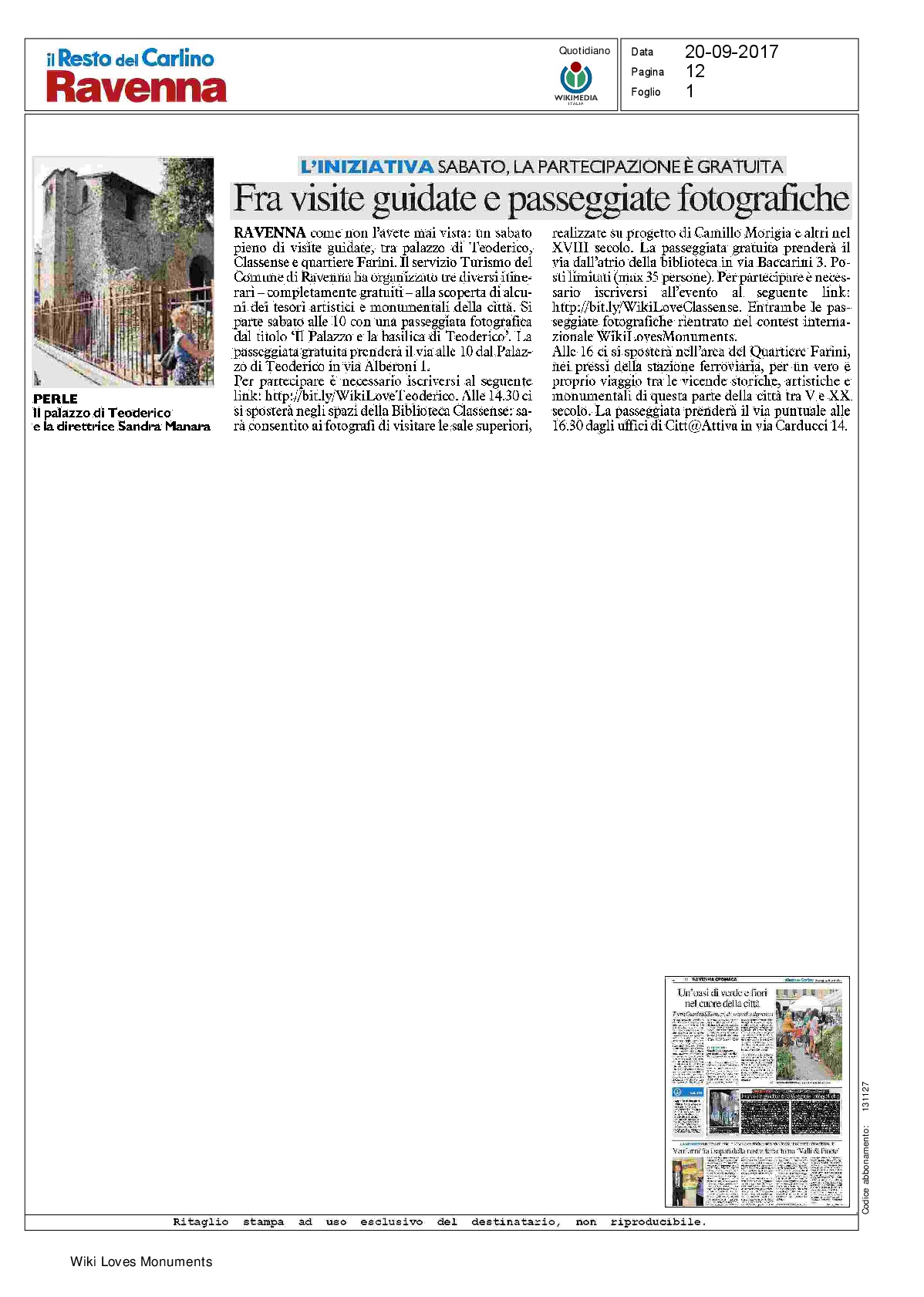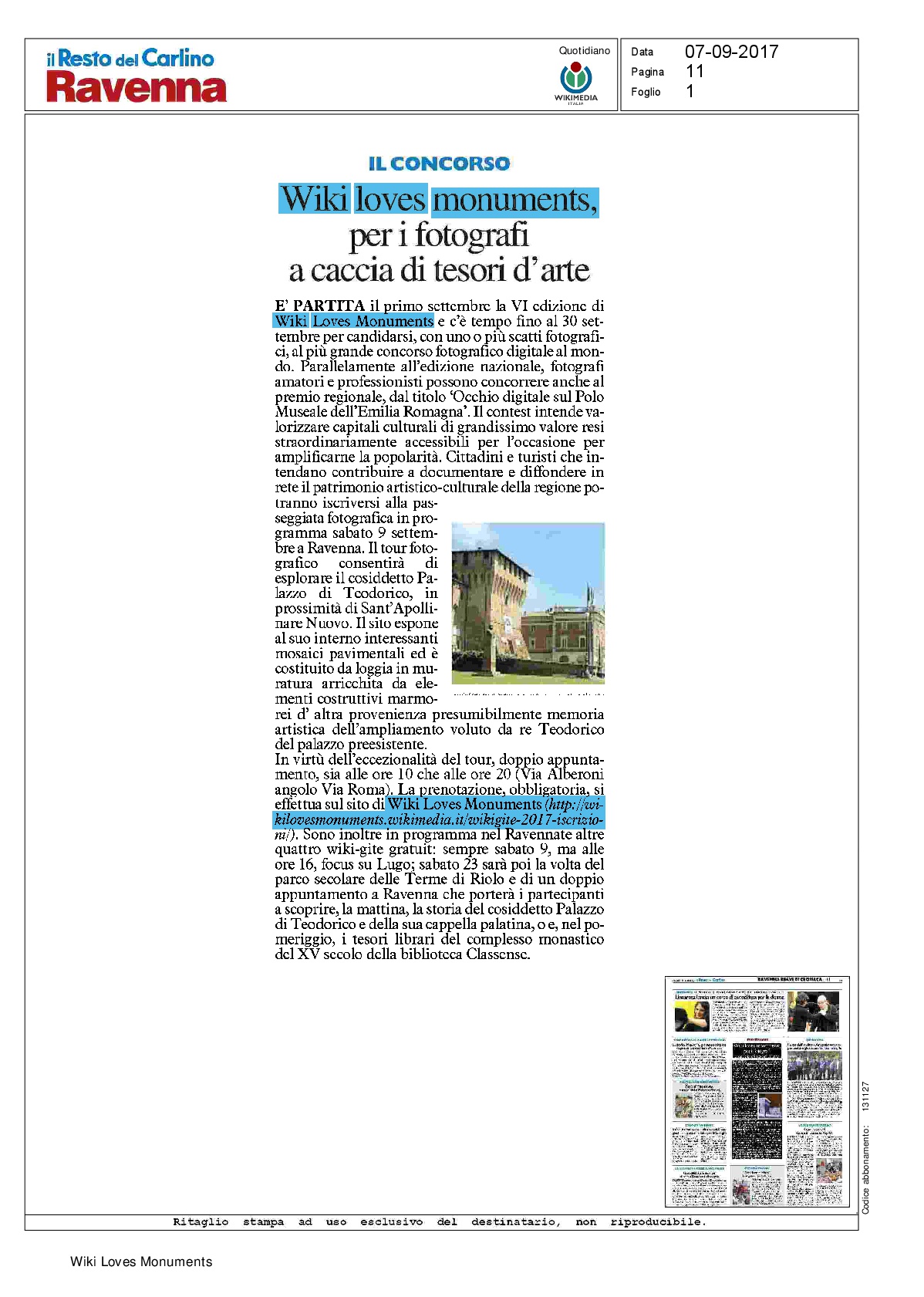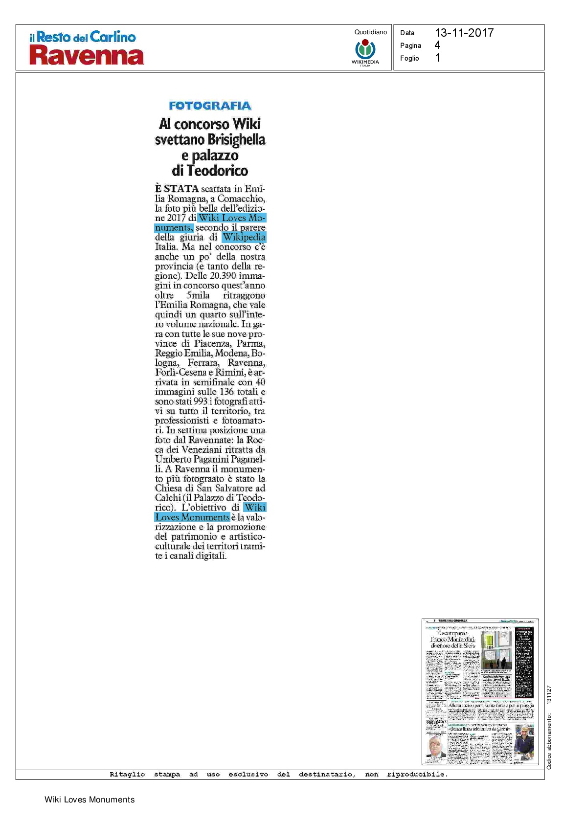- Al concorso Wiki svettano Brisighella e palazzo di Teodorico, Il Resto del Carlino - Ravenna
