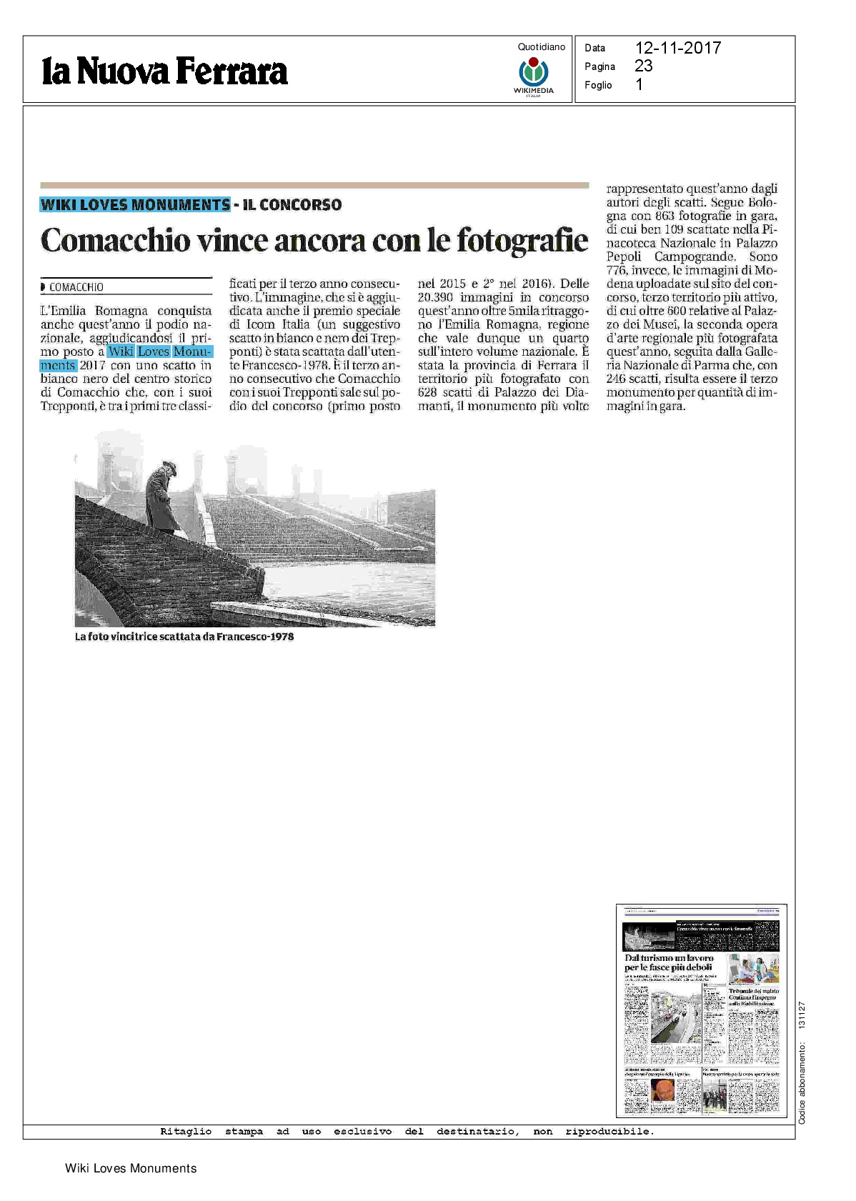 - Wiki Loves Monuments, vince una foto di Comacchio, Corriere di Bologna
