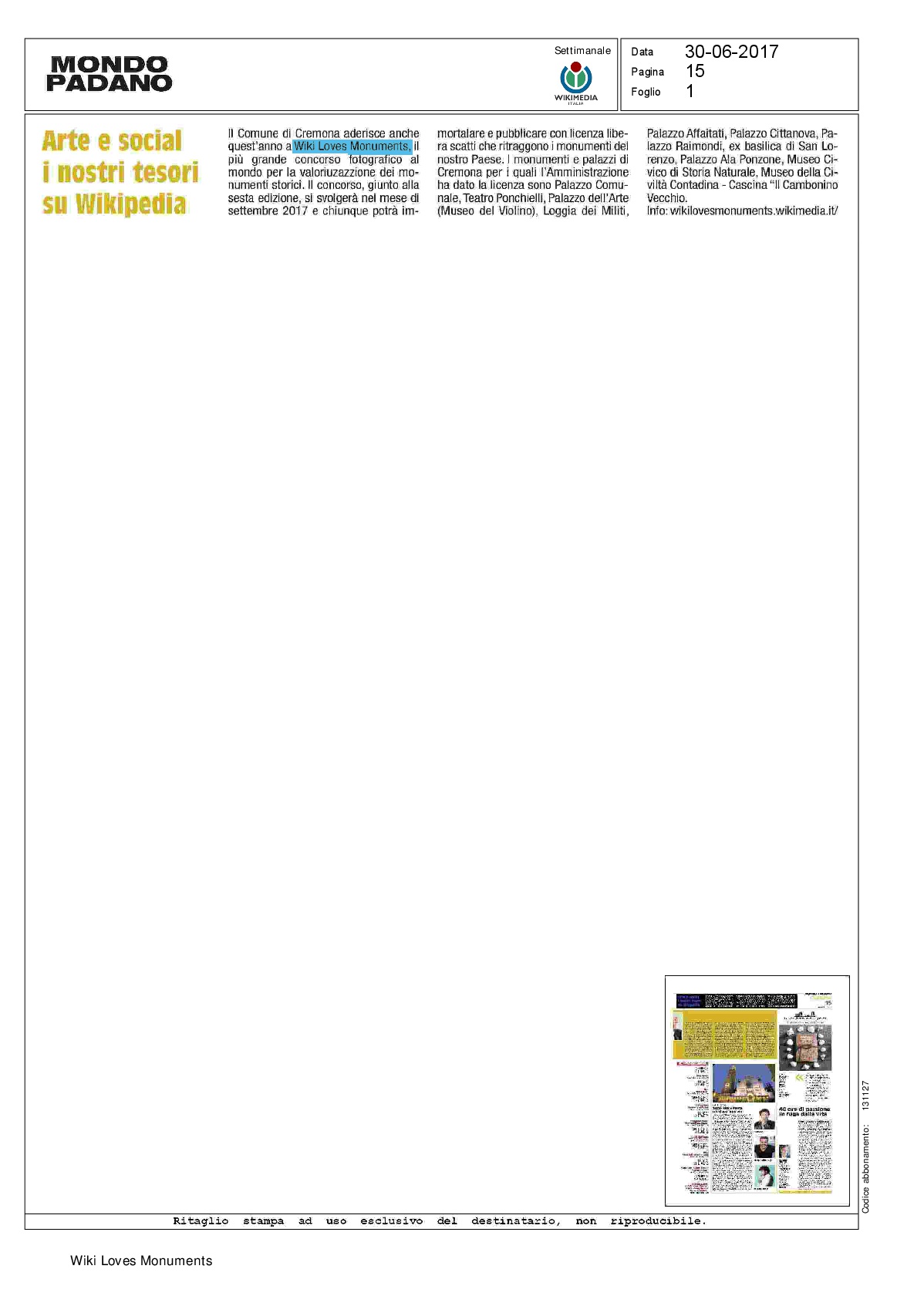 - Arte e social, i nostri tesori su Wikipedia, Mondo Padano