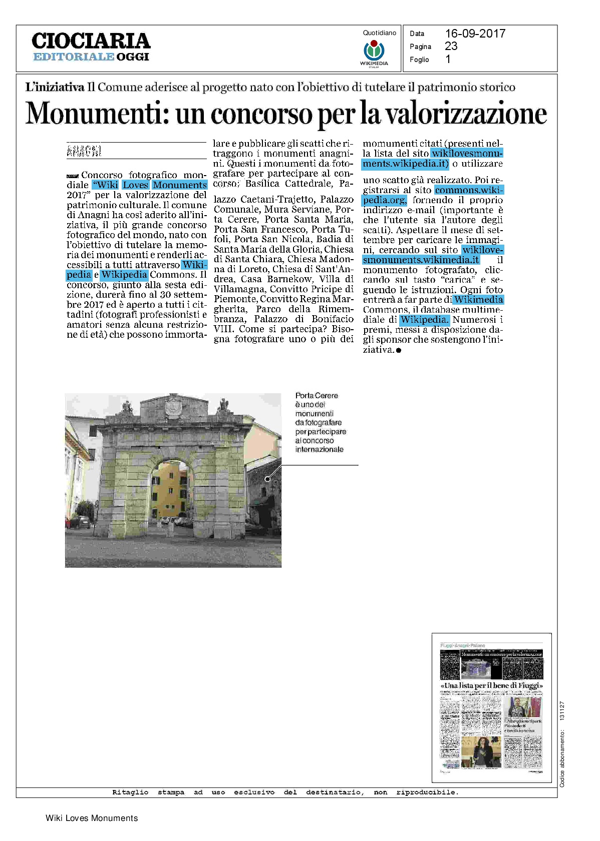 - Wiki loves monuments un concorso per la città, La Provincia - Frosinone