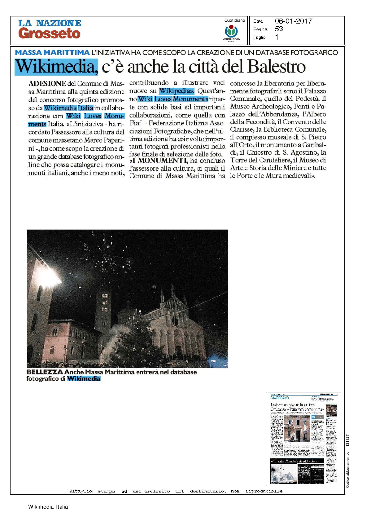 - Wikimedia, c'è anche la città del Balestro" , La Nazione - Grosseto