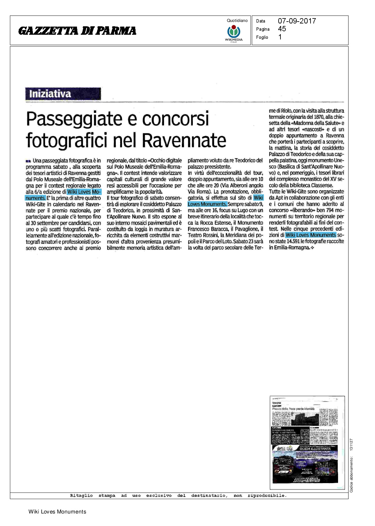 - Wiki Loves Monuments, Emilia-Romagna sul podio. Una foto di Parma al 5° posto, Gazzetta di Parma