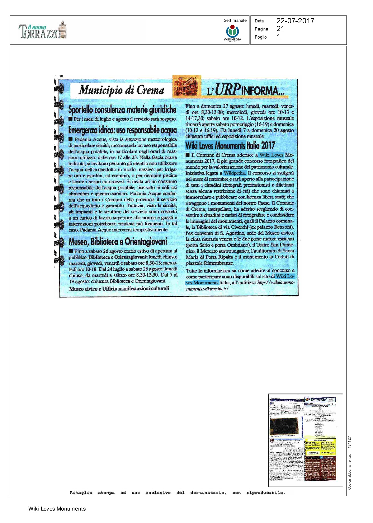 - Un torinese d’adozione tra i vincitori del Wiki Loves Monuments Italia “Ho trovato lo scatto perfetto”, Futuranews.it, di Emanuele Granelli