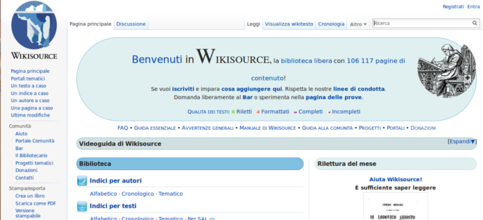 Wikisource compie 12 anni. La biblioteca digitale multilingue che raccoglie libri e testi rilasciati con licenza libera è nata ufficialmente il 24 novembre del 2003. Per festeggiare, la comunità organizza sulla Wikisource in italiano un concorso di rilettura. La gara consiste nella correzione del maggior numero di pagine da formattare e da rileggere. Wikimedia Italia offre ai vincitori tre buoni da utilizzare su librerie online. La rilettura consiste nel controllare, parola per parola, un testo di una pagina al 75% di qualità con la sua scansione a fronte; formattare una pagina vuol dire inserire tutti i template e i codici necessari alla corretta visualizzazione di una pagina al 50% di qualità (regolamento). Quest'anno è stato istituito anche un premio speciale "Europeana Food & Drink", in collaborazione con la Biblioteca universitaria Alessandrina e ICCU, consistente in altri tre buoni per librerie online. Tutti i premi sono offerti da Wikimedia Italia.