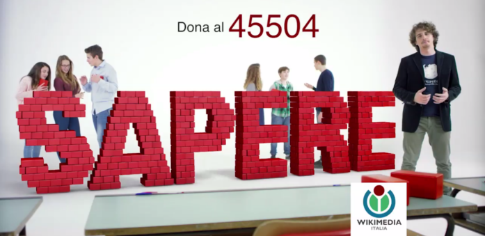Dal 10 al 24 luglio 2016 è possibile fare una donazione via sms o da telefono fisso al 45504 per finanziare i progetti nelle scuole di Wikimedia Italia. Da oltre dieci anni diffondiamo tra gli studenti e i docenti la conoscenza di Wikipedia. Solo nel 2015 abbiamo tenuto 55 corsi, coinvolgendo 1300 studenti, in 8 regioni d'Italia. Grazie alla raccolta fondi con sms solidale, vogliamo raggiungere le scuole di tutto il Paese. Per l'occasione è stato realizzato uno spot visibile a questo link: http://smssolidale.wikimedia.it/.