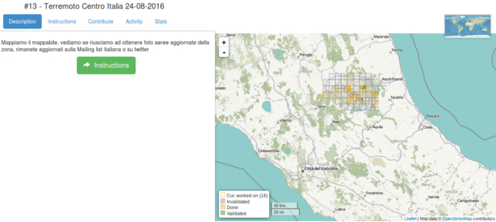 OpenStreetMap non è solo mappatura libera, ma è anche volontariato attivo nelle occasioni di emergenza. Il centro Italia è stato colpito da un forte terremoto la notte del 24 agosto e la comunità di mappatori si è messa subito all'opera per aggiornare le mappe delle aree colpite, segnalare i danni, le variazioni dei percorsi stradali provocate dal sisma, i centri di raccolta dei beni di prima necessità e quanto può essere utile a soccorritori e cittadini. Tutti possono contribuire. A questo link si trovano le istruzioni e tutte le informazioni utili: http://www.wikimedia.it/terremoto-la-comunita-openstreetmap-al-lavoro/.